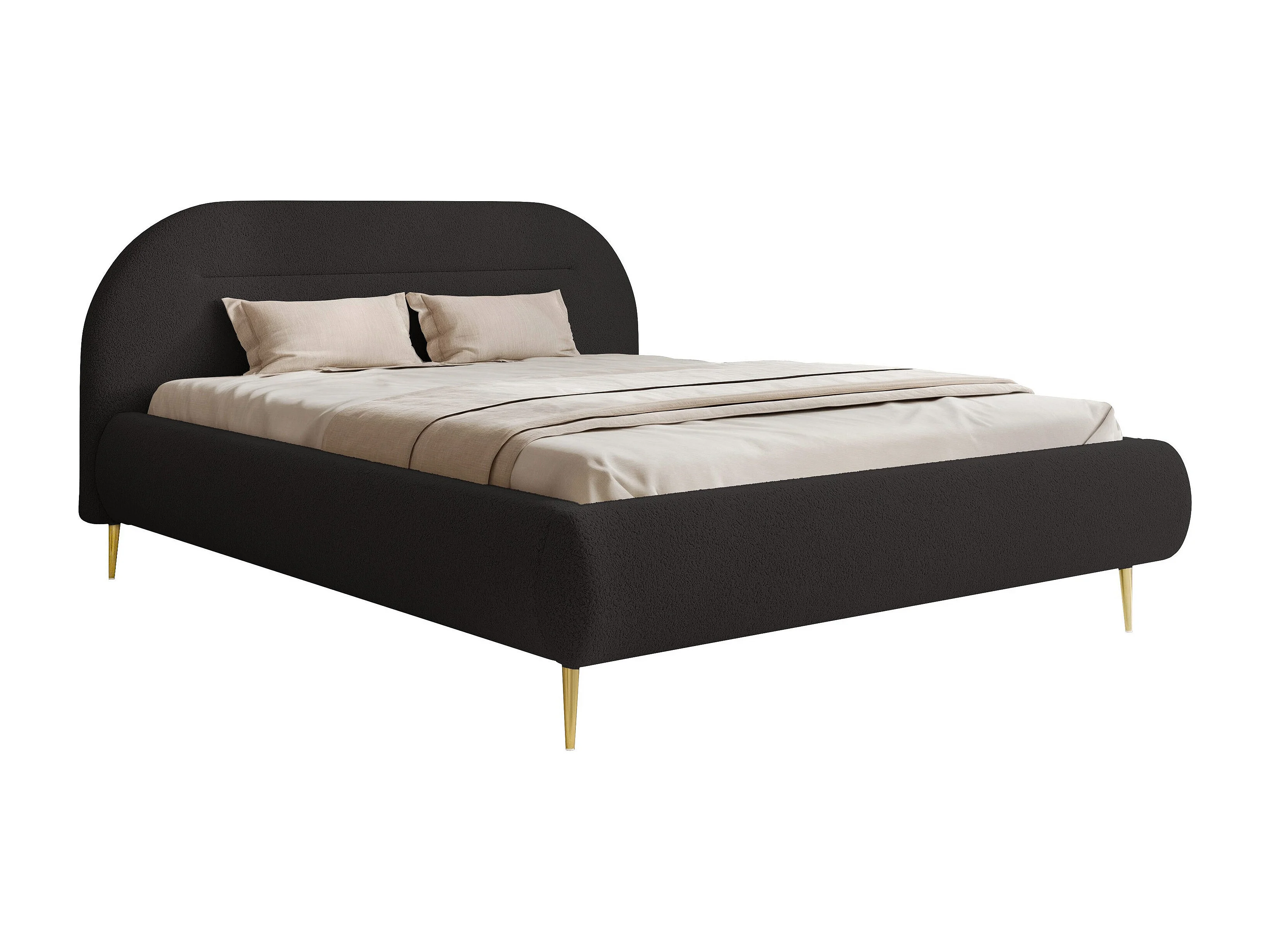 BESILIO Nowoczesne łóżko z pojemnikiem 180x200 Apolline II - łóżko zaokrąglone wezgłowie, miękka tkanina pluszowa, łóżko na wysokich nogach- Czarny