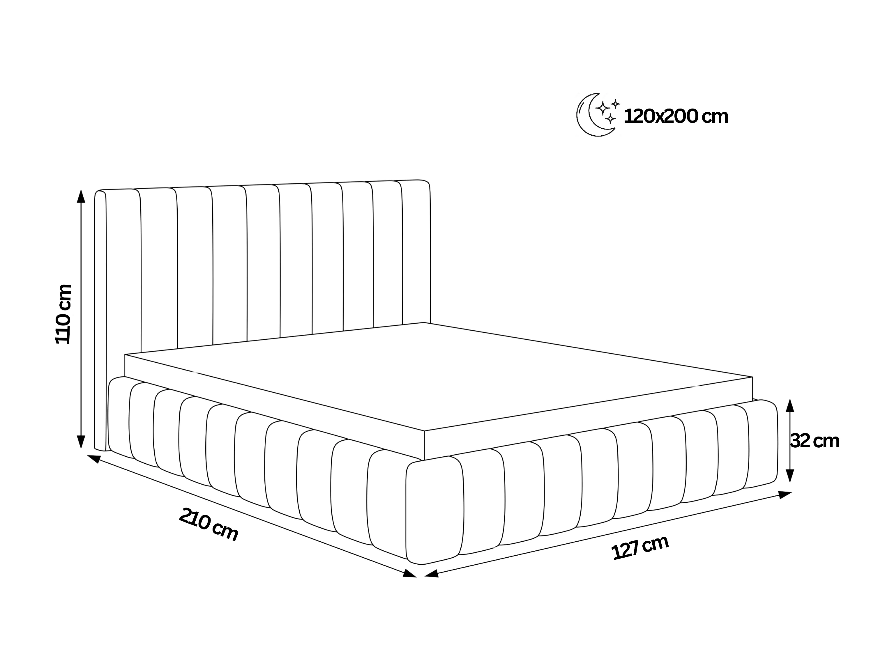 BESILIO Podwójne łóżko 120x200 Tina - Łóżko slim do sypialni ze stelażem i pojemnikiem na pościel- Tkanina welurowa- Beżowy
