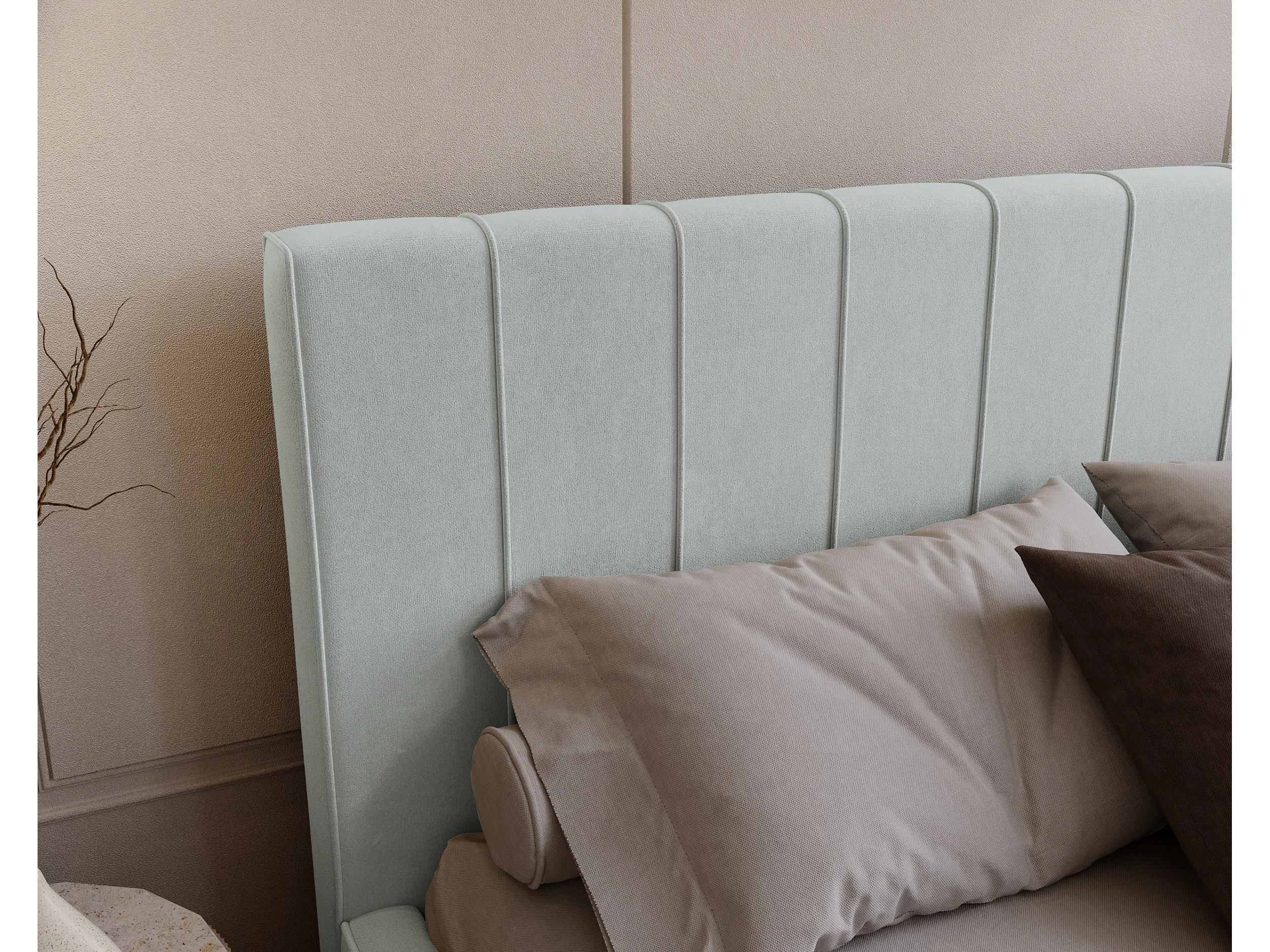 BESILIO Łóżko tapicerowane z pojemnikiem 160x200 Nuvia - Łóżko slim, miękkie wezgłowie, stelaż metalowy- Szary
