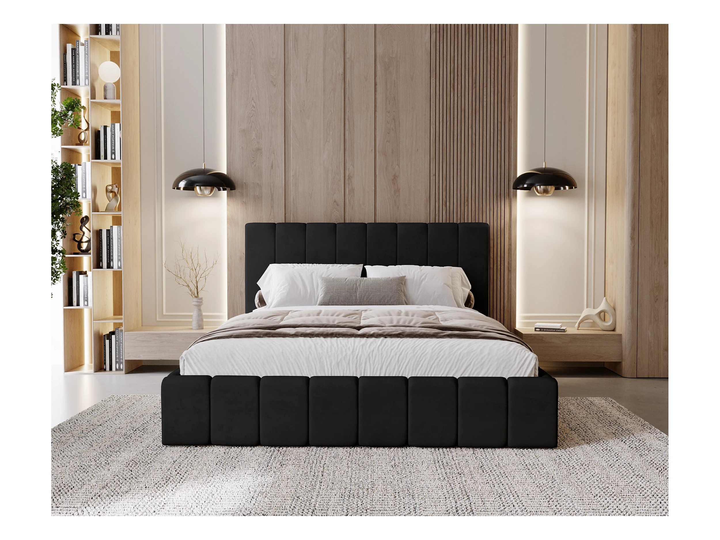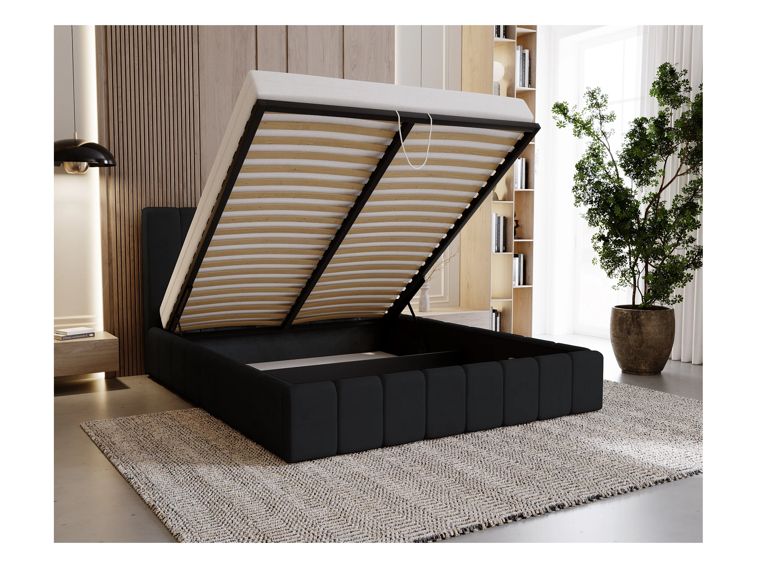 BESILIO Tapicerowane łóżko slim 180x200 Lexy - stelaż metalowy, pojemnik na pościel, slim łóżko, tkanina velurowa - Czarny
