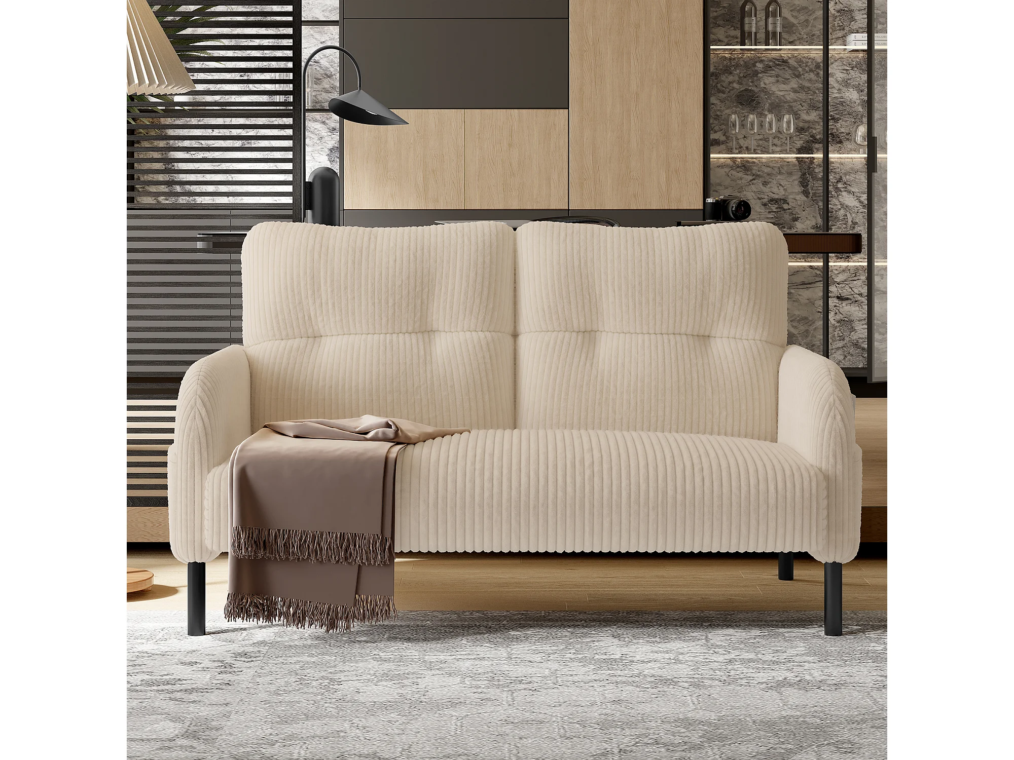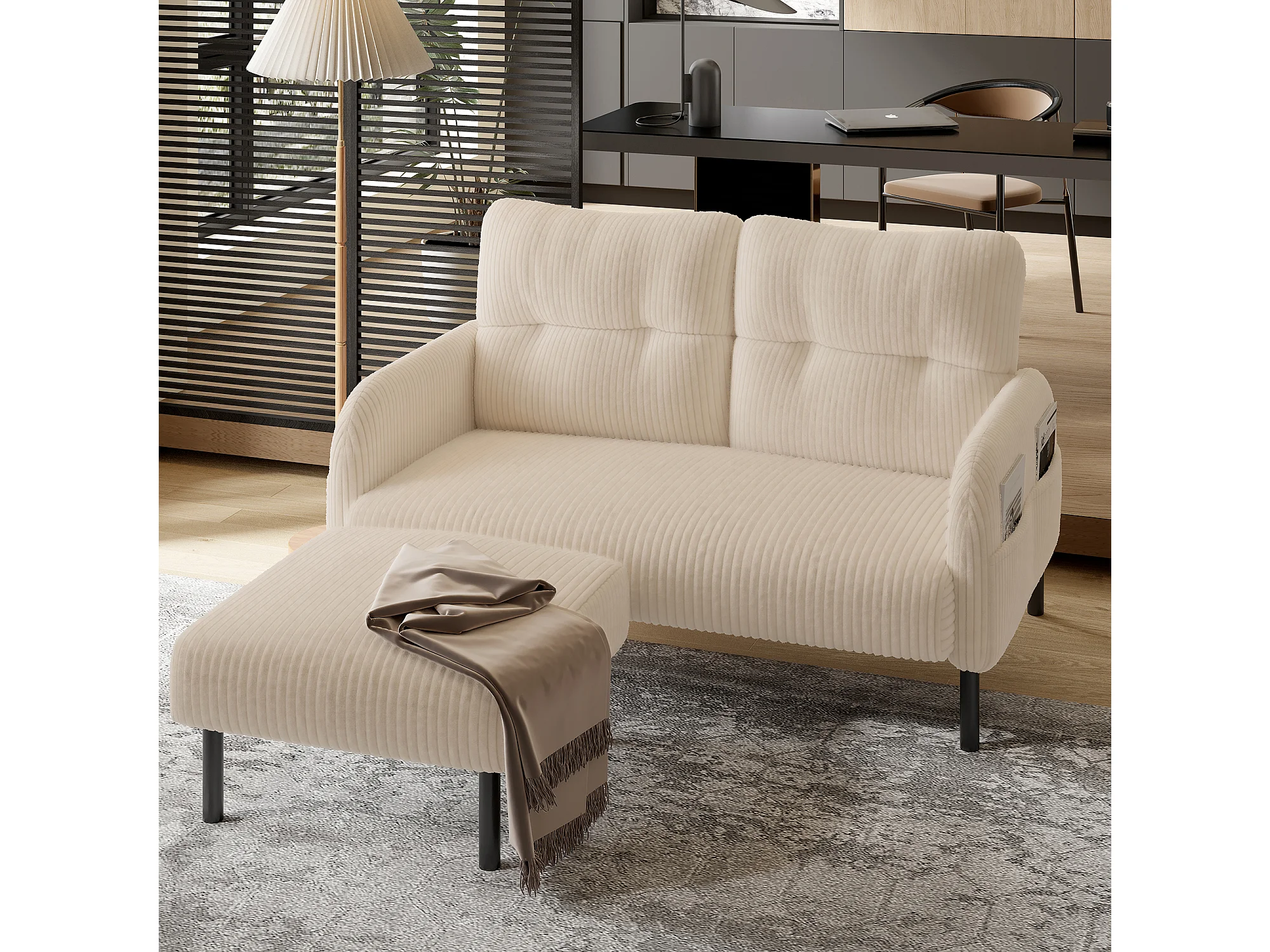 Beżowa sofa prosta - Fotel z oparciem i kieszeniami bocznymi - sztruks - do biur i salonów
