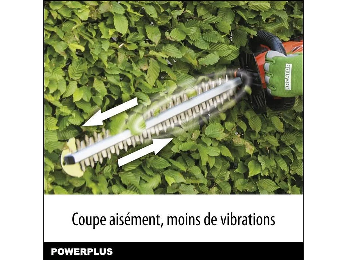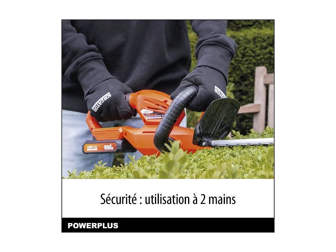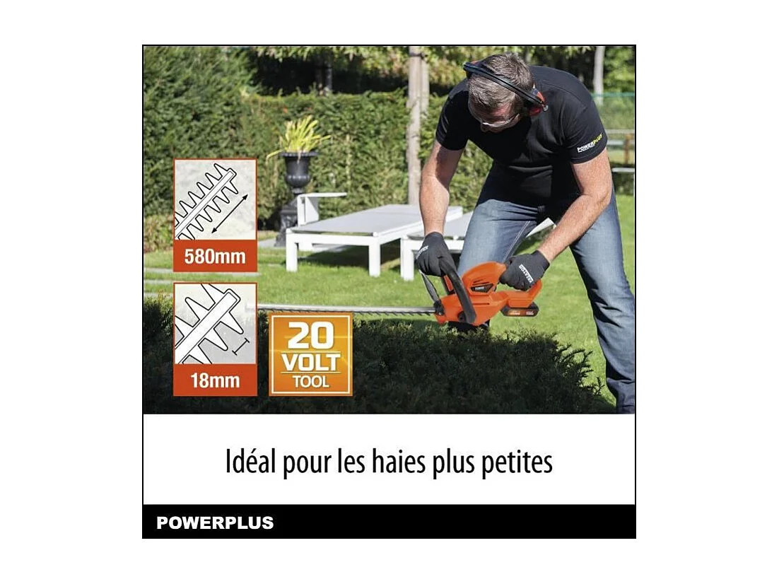 Bezprzewodowe nożyce do żywopłotu 20V POWDPG7531 - Ostrze dwustronne 58 cm, rozstaw zębów 18 mm, lekkie 2,03 kg, bezpieczeństwo dwuręczne
