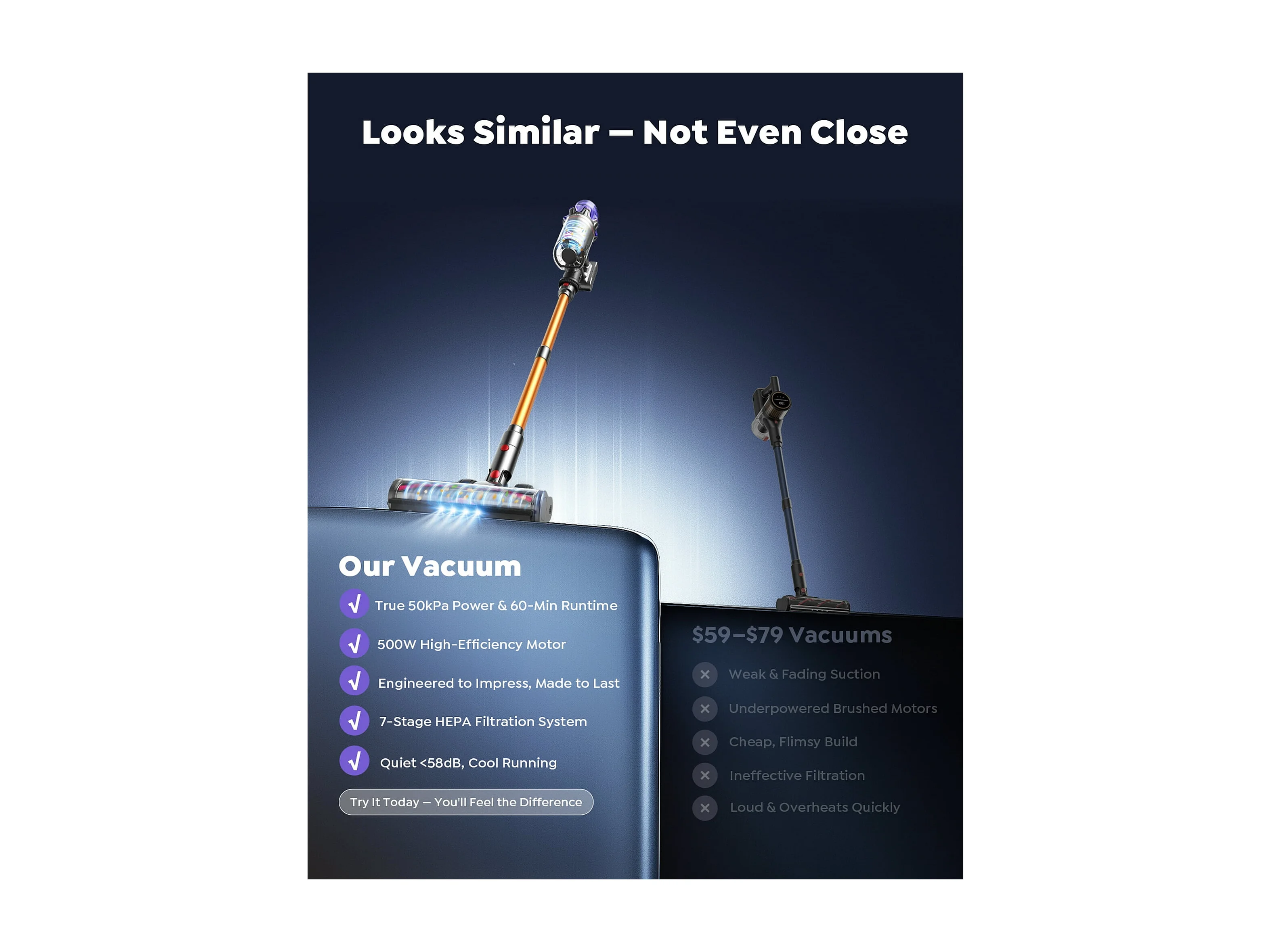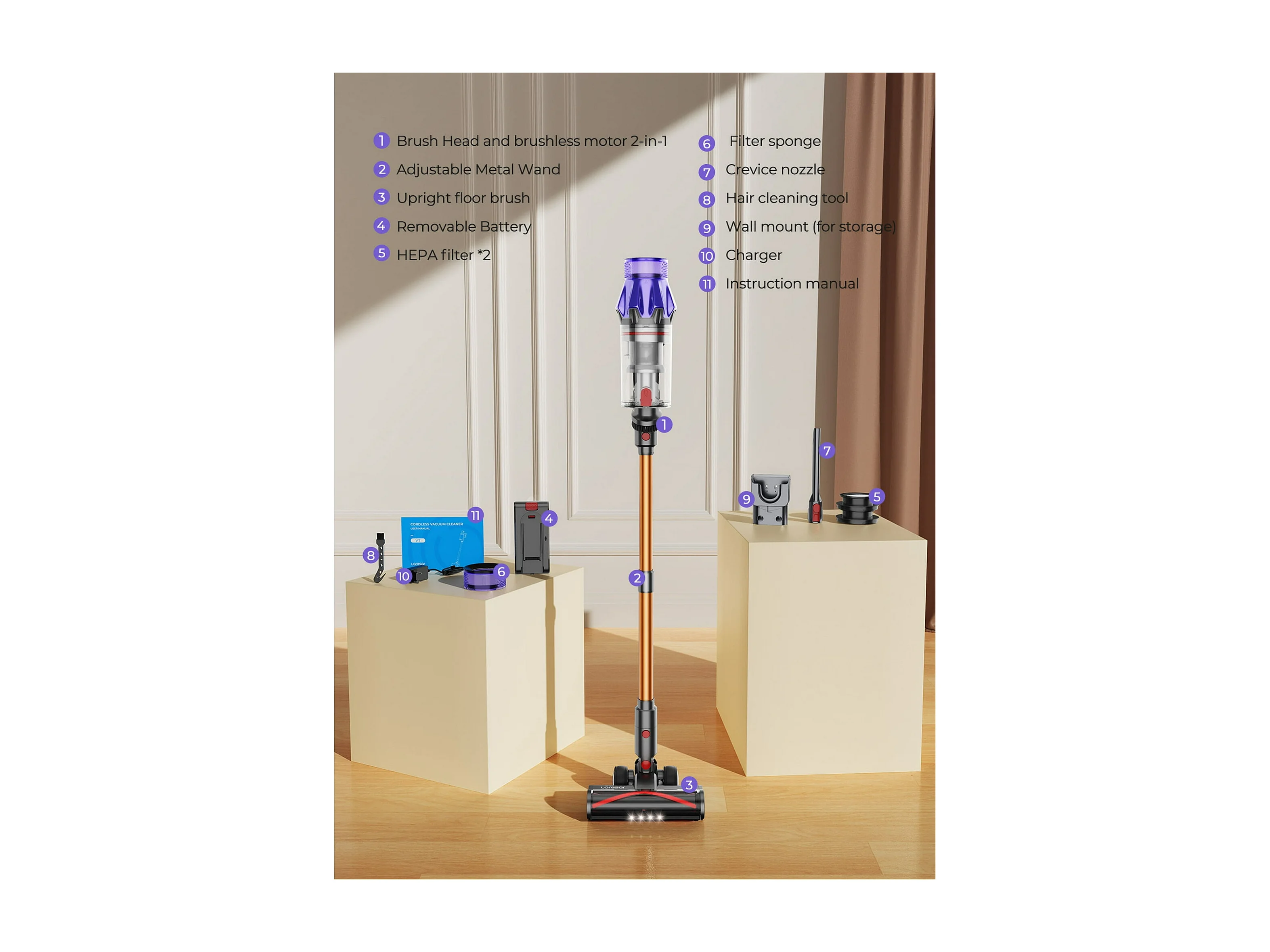 Bezprzewodowy odkurzacz Nettlife, siła ssania 50 kPa, silnik 500 W, czas pracy 60 minut, najwyższej jakości konstrukcja chroniąca zwierzęta i podłogi