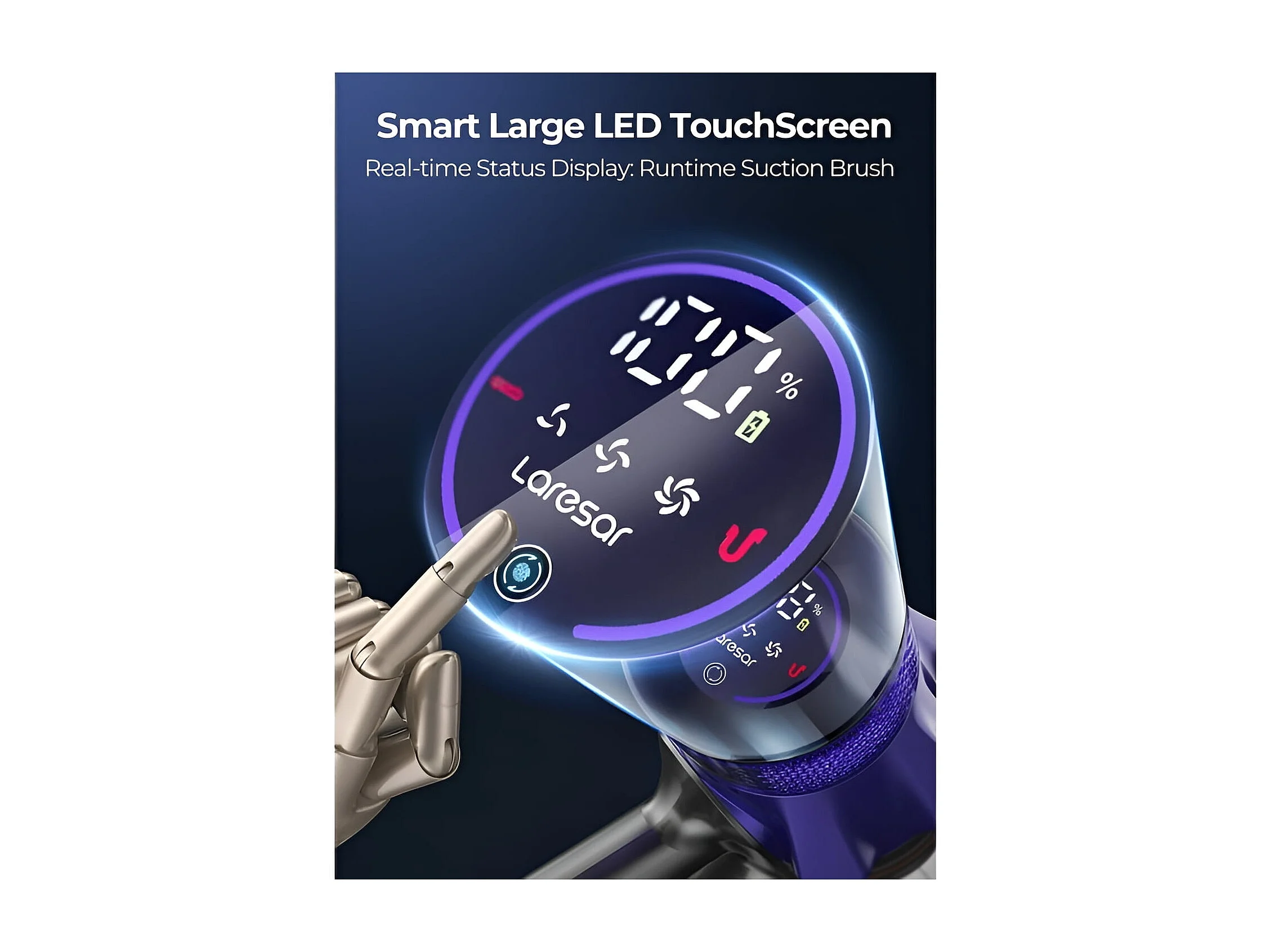 Nettlife JAS-V15 bezprzewodowy odkurzacz ręczny i pionowy, duża siła ssania 40 kPa, czas pracy na baterii 60 minut, regulowana prędkość za pomocą ekranu dotykowego.