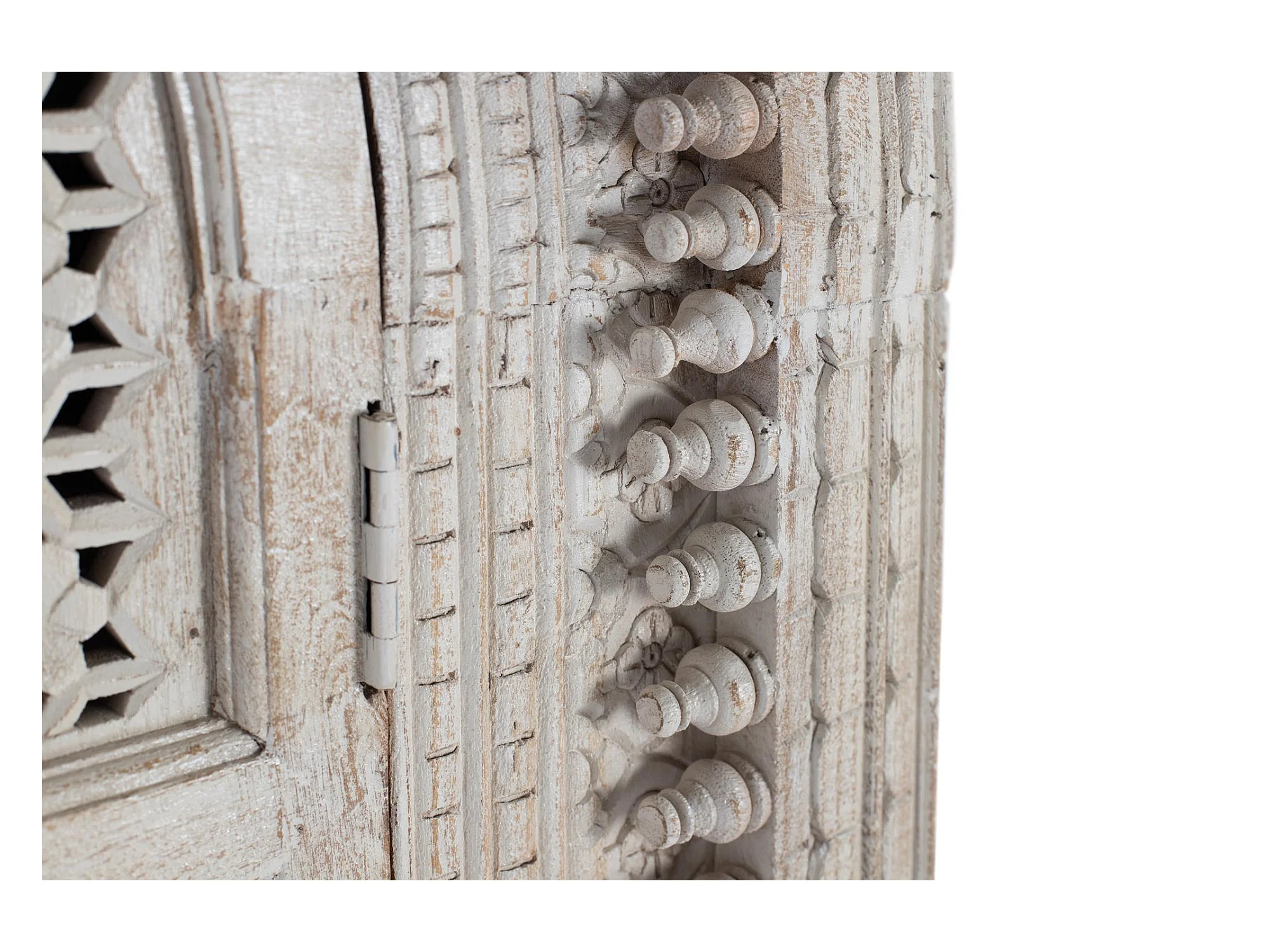 Stara, biała szafka z drewna mango z wyrafinowanym akcentem