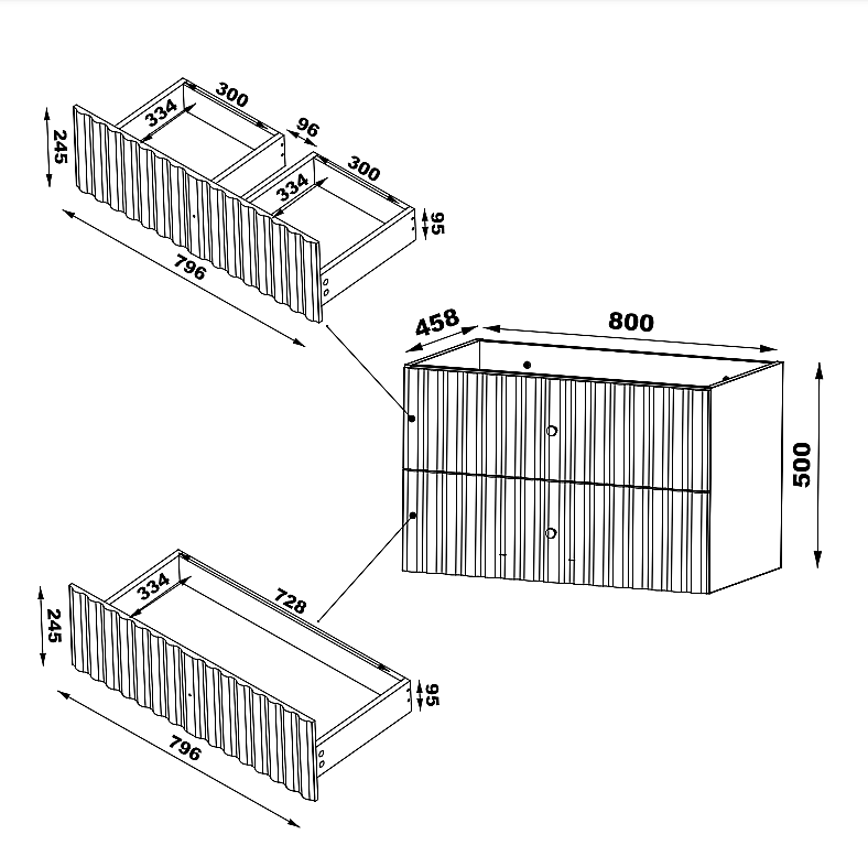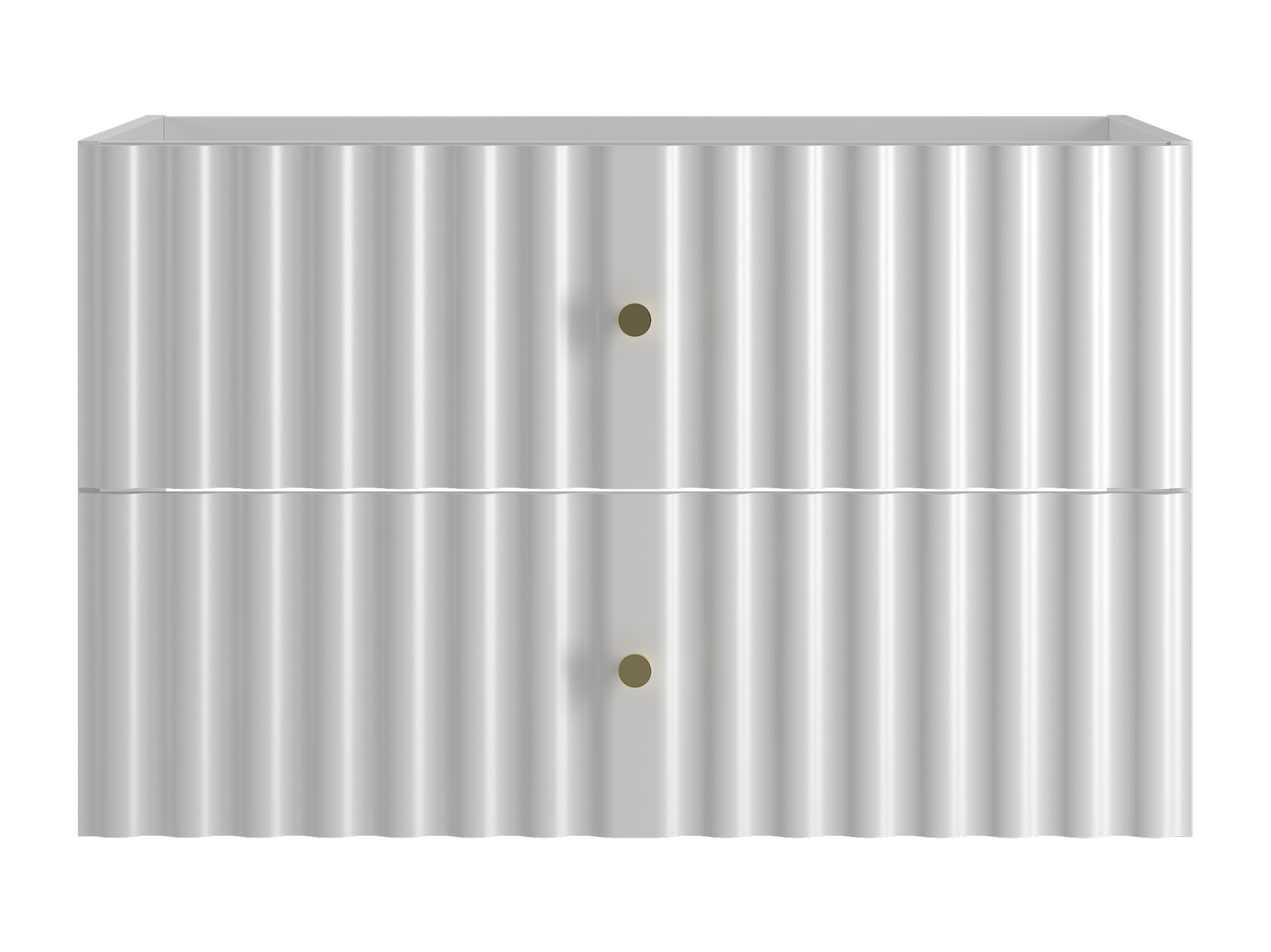 · Fronty z wysokiej jakości płyty MDF zdobią pionowo frezowane ryfle, nadając im wyjątkowego charakteru.