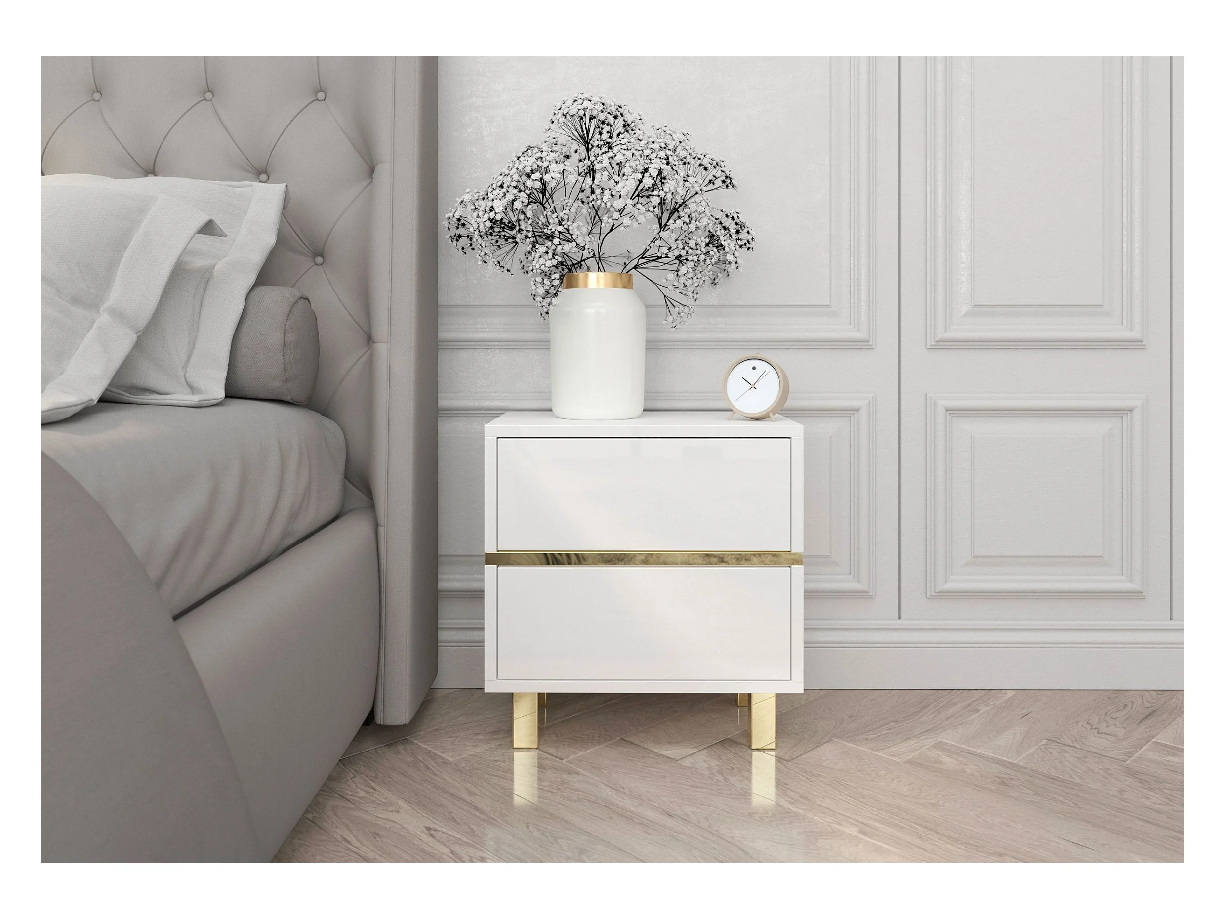 Biała szafka nocna Skandica MERLIN ze złotymi dodatkami