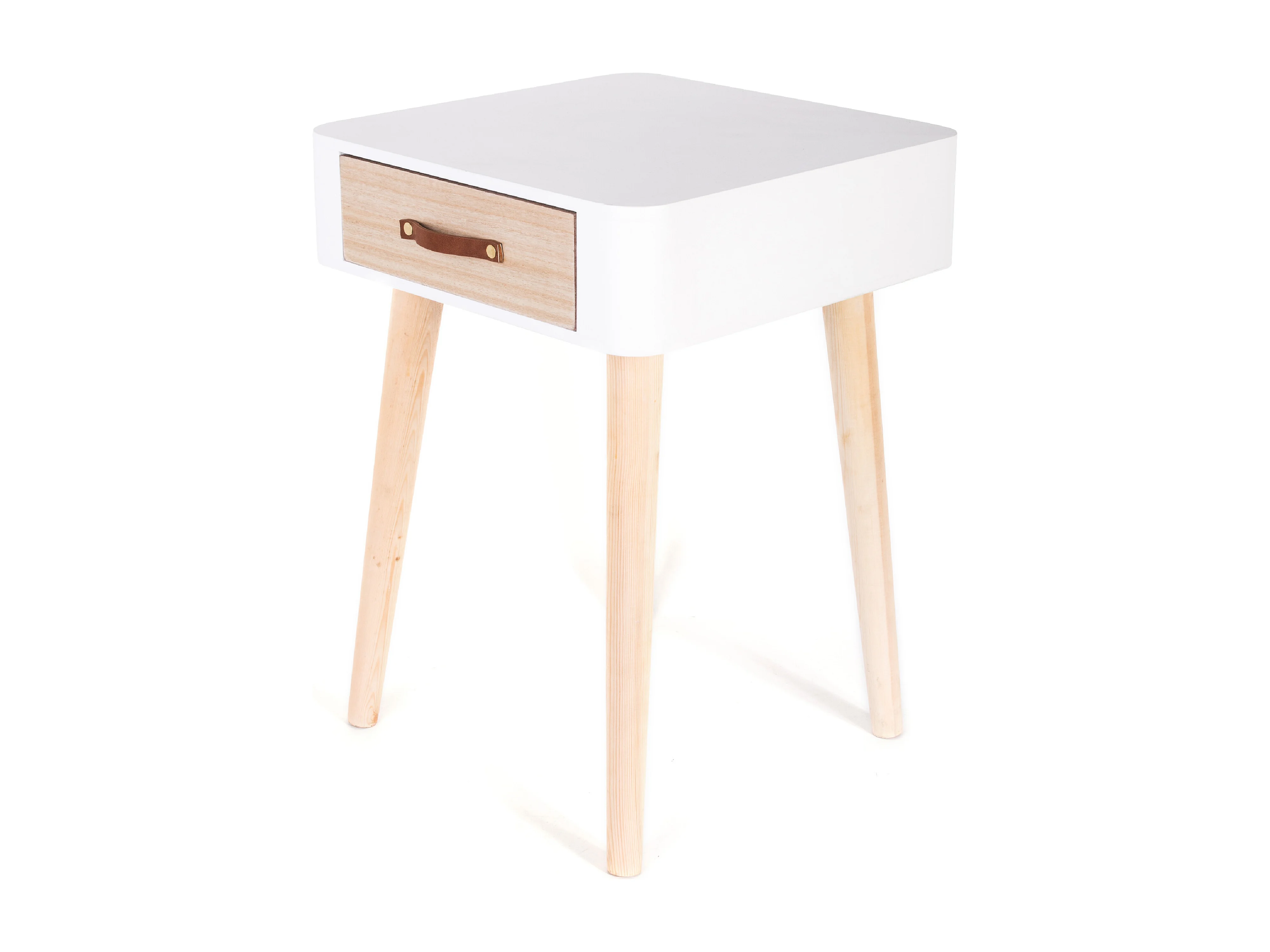 Biała Szafka Nocna z 1 Szufladą w Nowoczesnym Stylu Skandynawskim