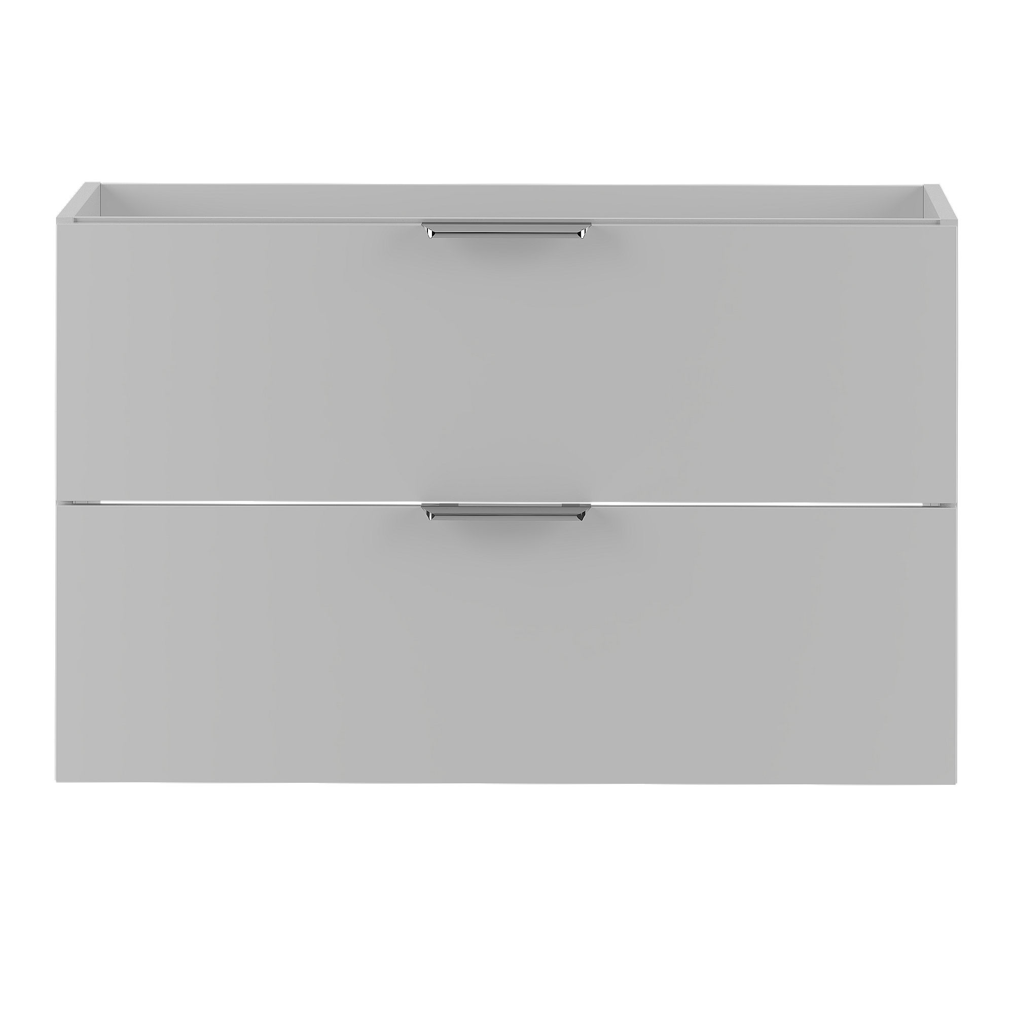Uwagę przykuwają minimalistyczne, gładkie fronty oraz wyjątkowy akcent w postaci uchwytów – do każdej szafki dołączony jest komplet aż trzech ich wariantów kolorystycznych: czarny, złoty oraz chrom. To rozwiązanie daje pełną swobodę w dopasowaniu mebli do wybranej armatury i stylu wnętrza. Wszystkie elementy kolekcji są wiszące i wyposażone w system cichego domyku, co zwiększa komfort codziennego użytkowania.