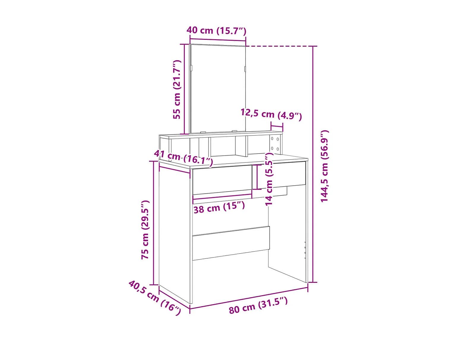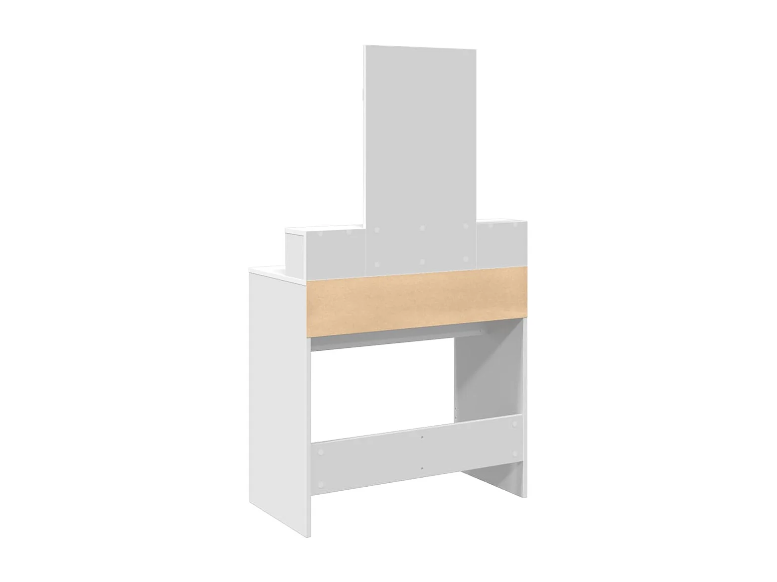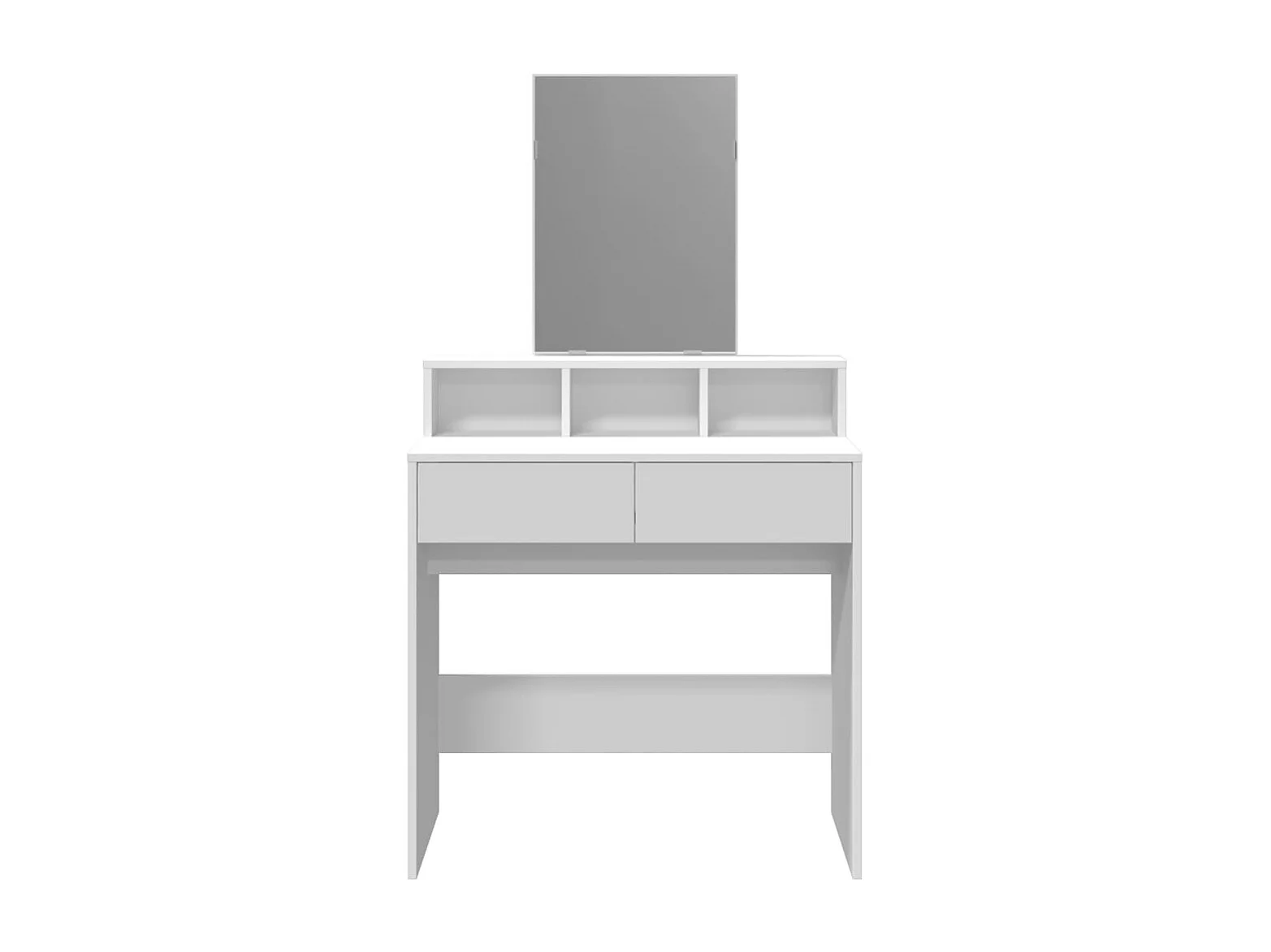 Biała toaletka 80x41x144,5 cm z lustrem i 2 szufladami, praktyczne przechowywanie z drewna inżynieryjnego