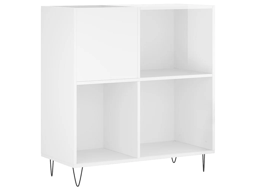 Biały błyszczący mebel na płyty winylowe 84,5x38x89 cm z drewna inżynieryjnego z metalowymi nogami i mocowaniem ściennym
