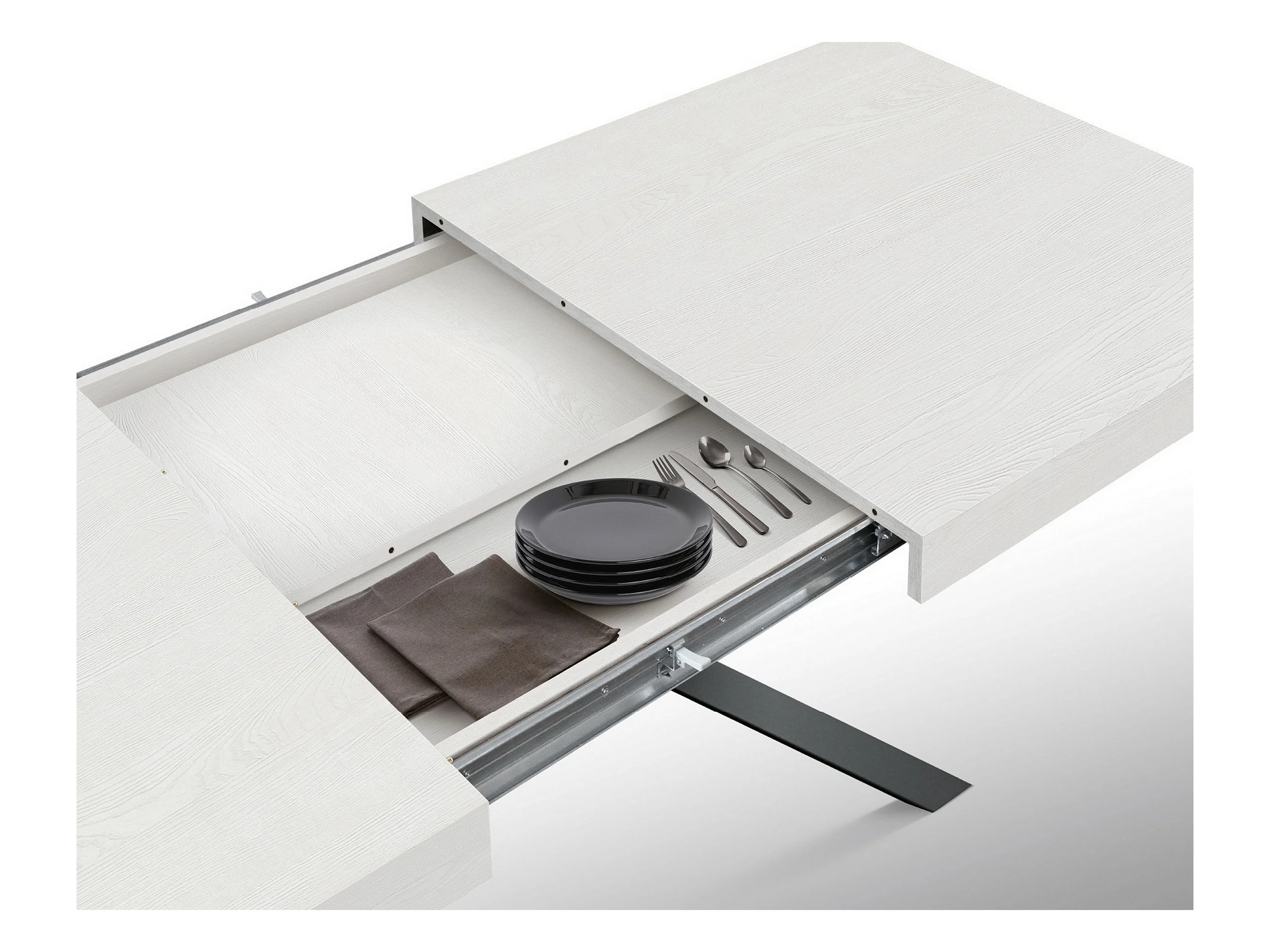 Biały stół z drewna jesionowego, antracytowe metalowe nogi 95x90-145x90cm - FORTE DEI MARMI
