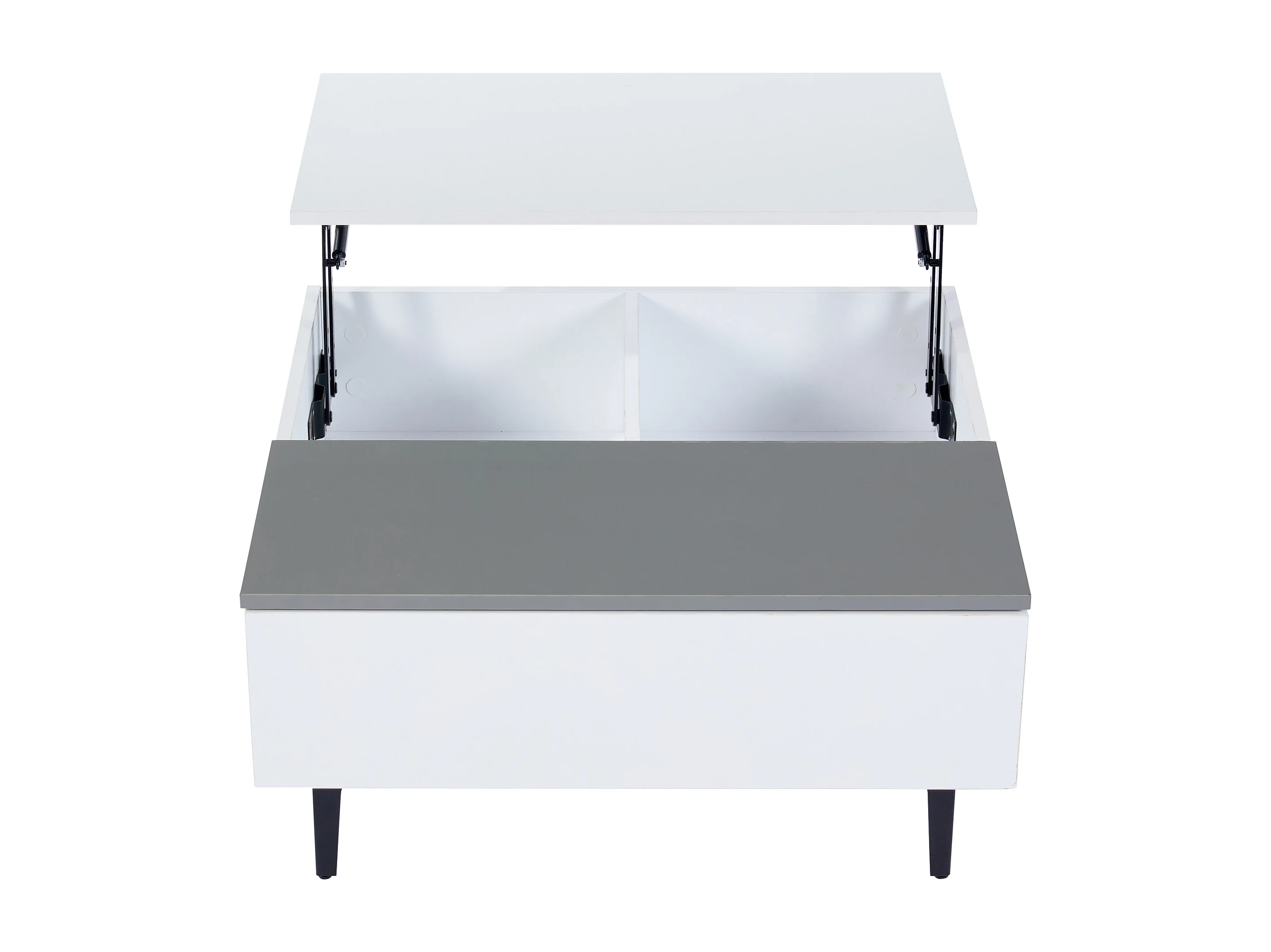 Ława z podnoszonym blatem – MDF i metal chromowany – kolor biały lakierowany – SECALI