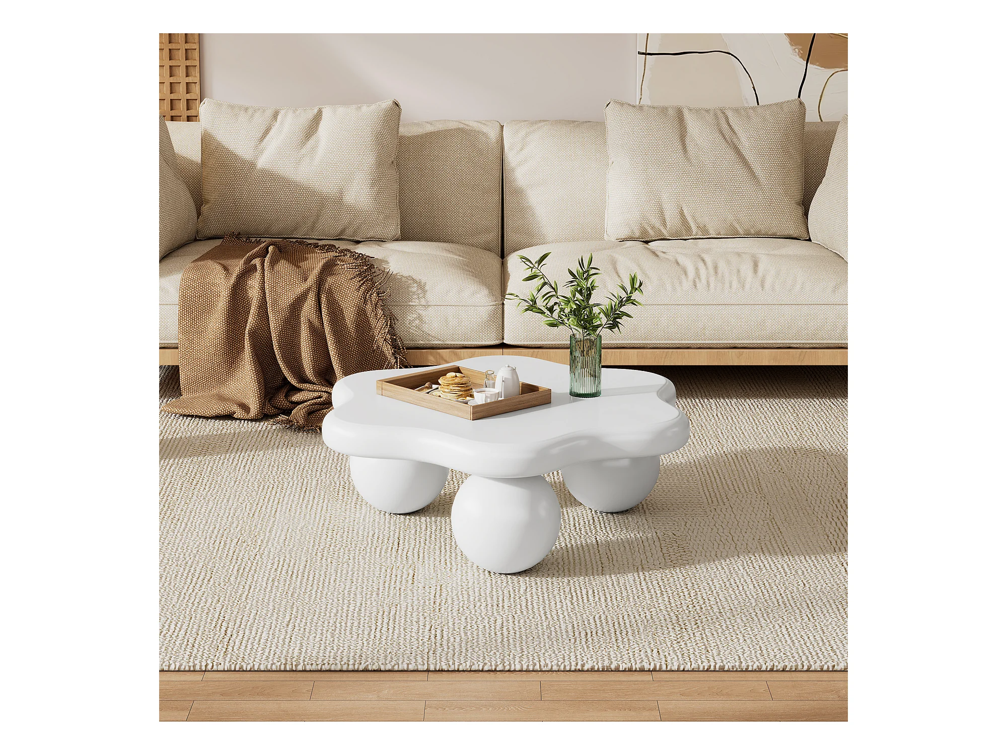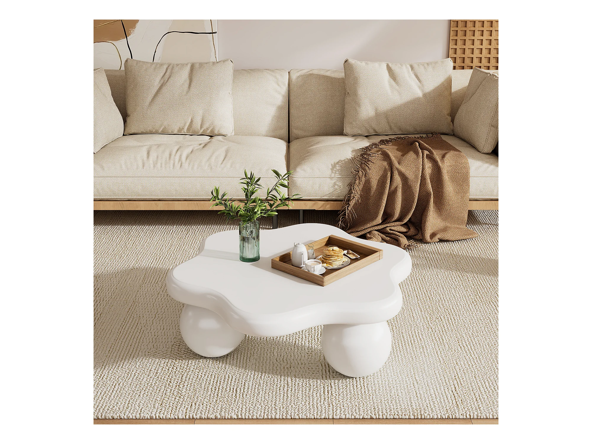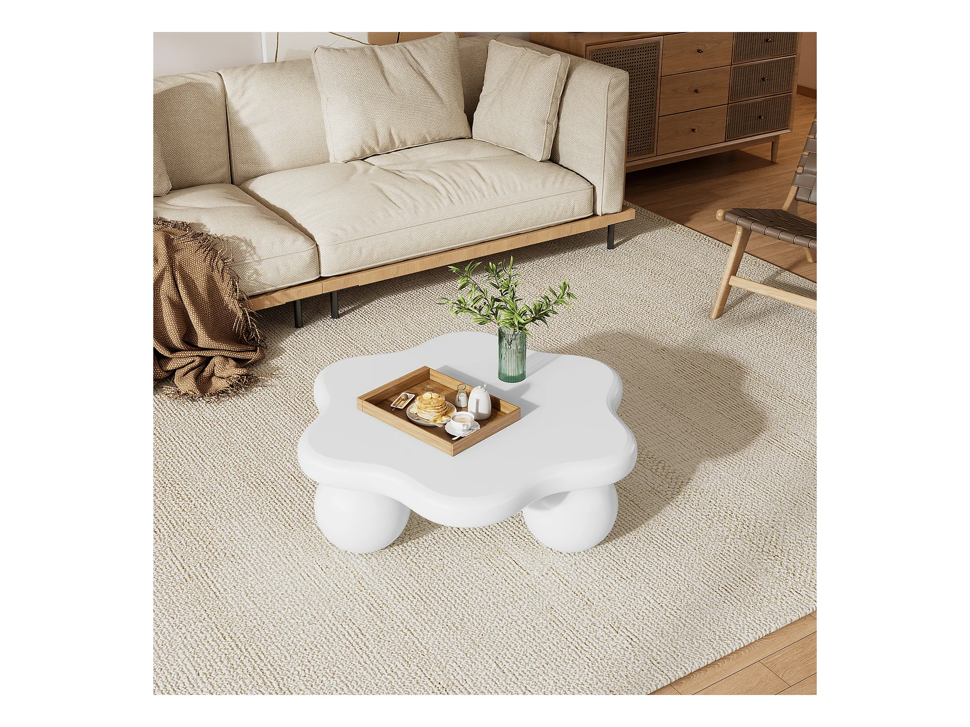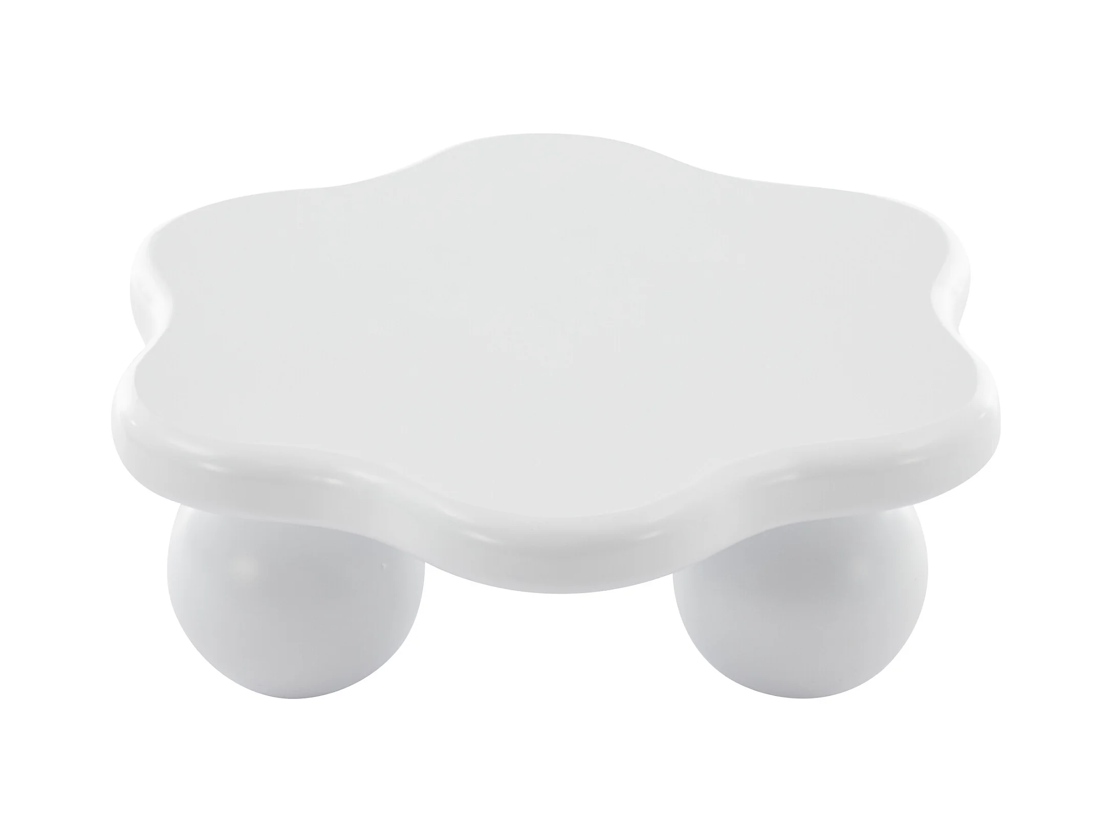 Biały stolik kawowy w kształcie kwiatka, MDF, nogi okrągłe, 80x72x32cm - do salonu lub biura
