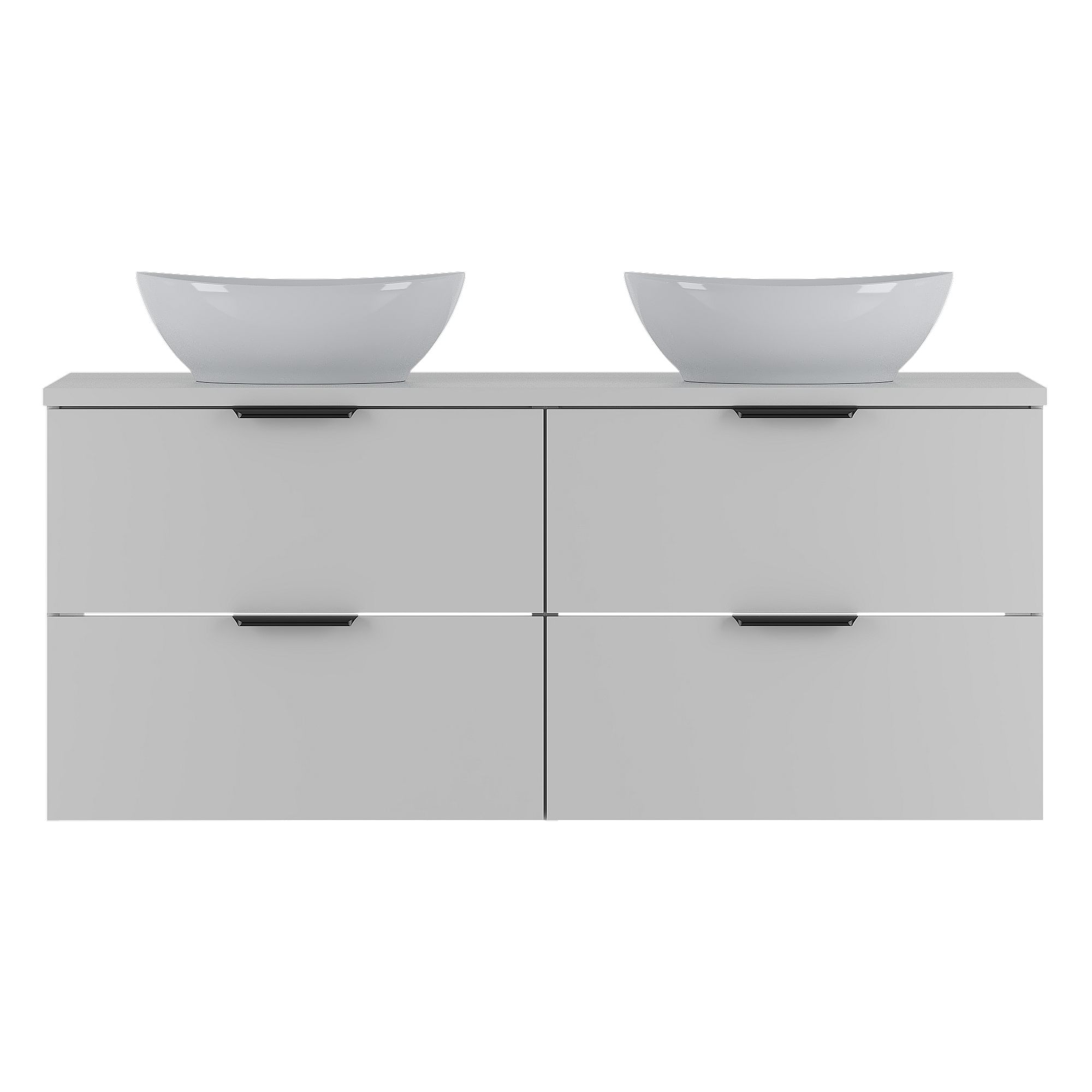 Wisząca szafka łazienkowa ze żłobieniami kolor biały z podwójną umywalką nablatową – 120 cm – LATOMA