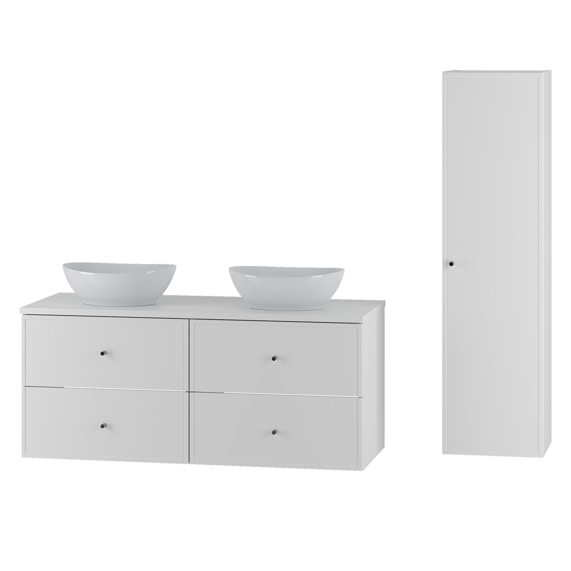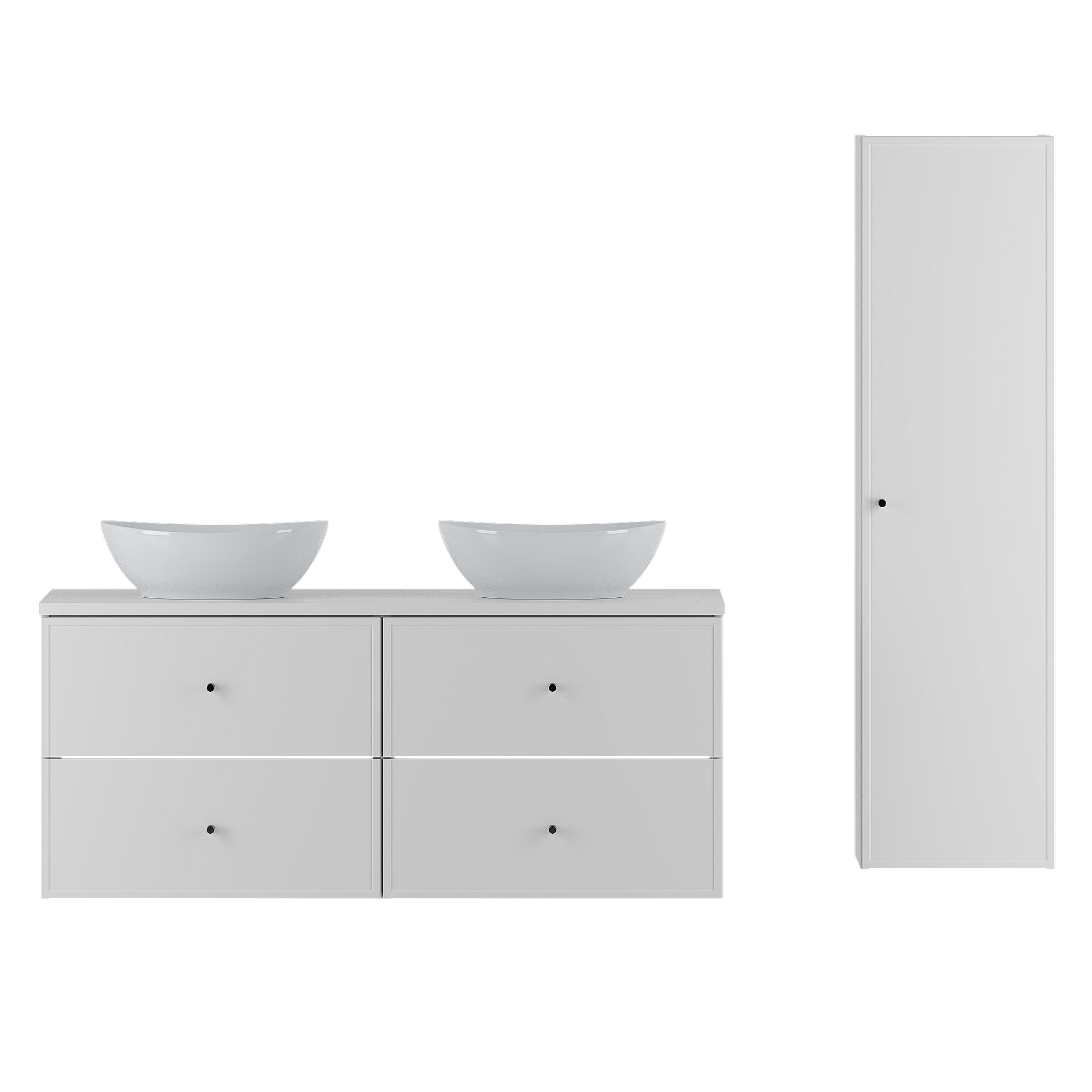 Szafka łazienkowa wisząca z podwójną umywalką wpuszczaną i słupkiem - Biały - 120 cm - SELITA