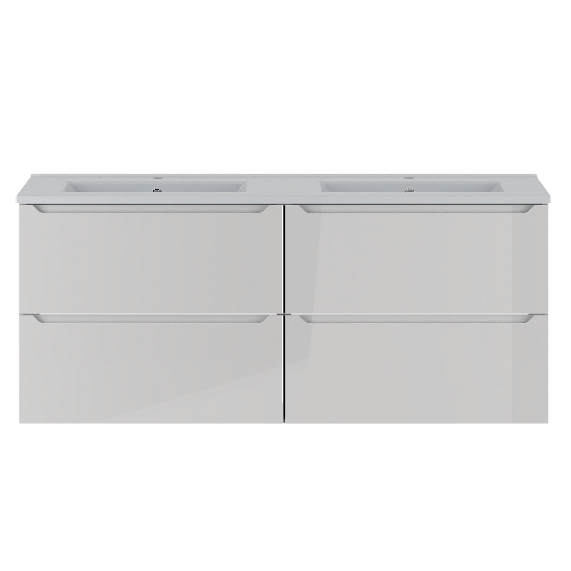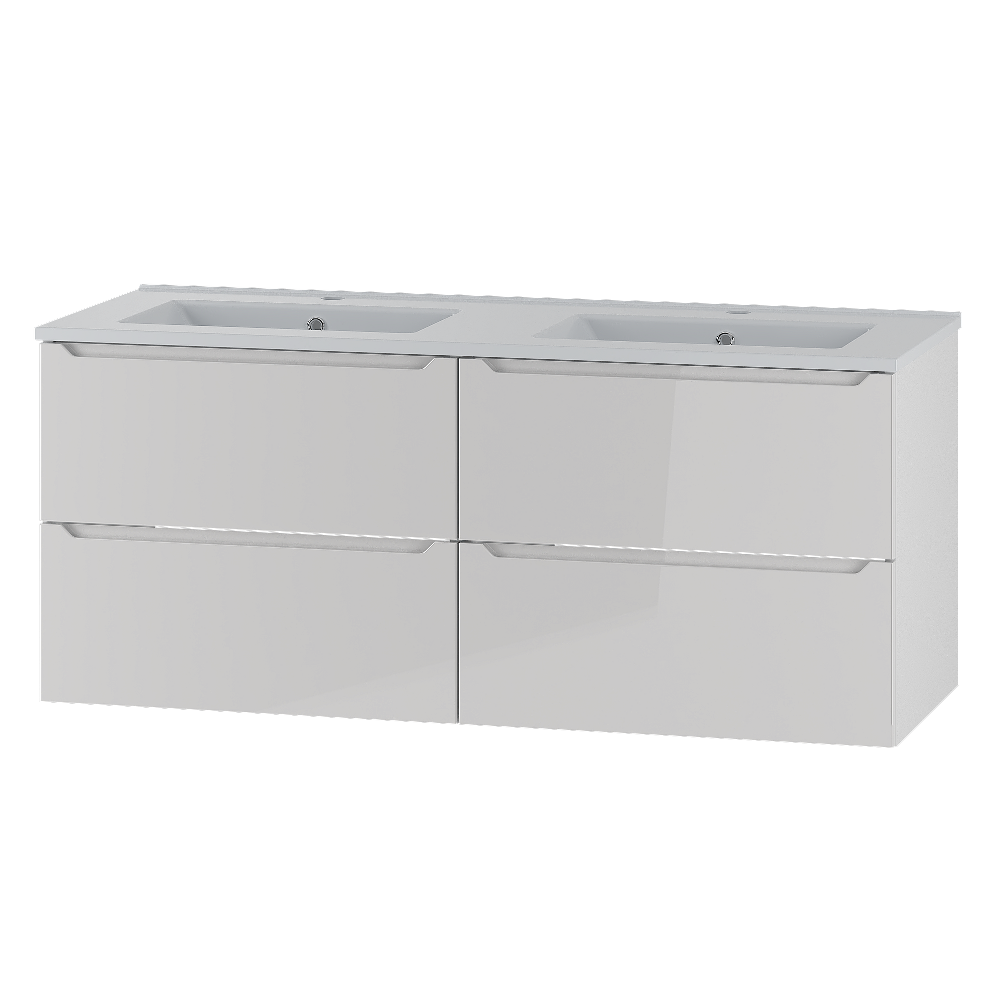 Wisząca szafka łazienkowa ze żłobieniami kolor biały z podwójną umywalką nablatową – 120 cm – LATOMA