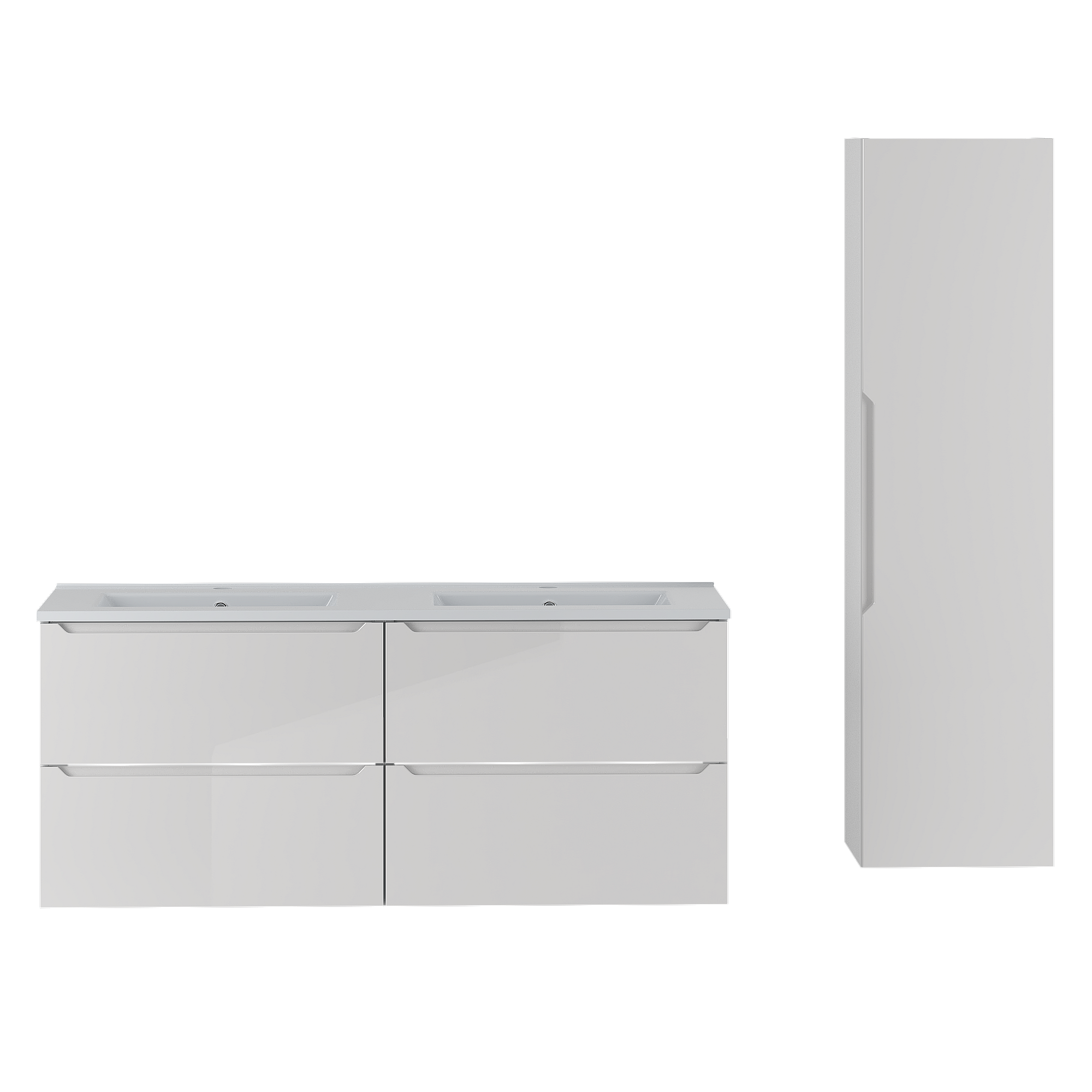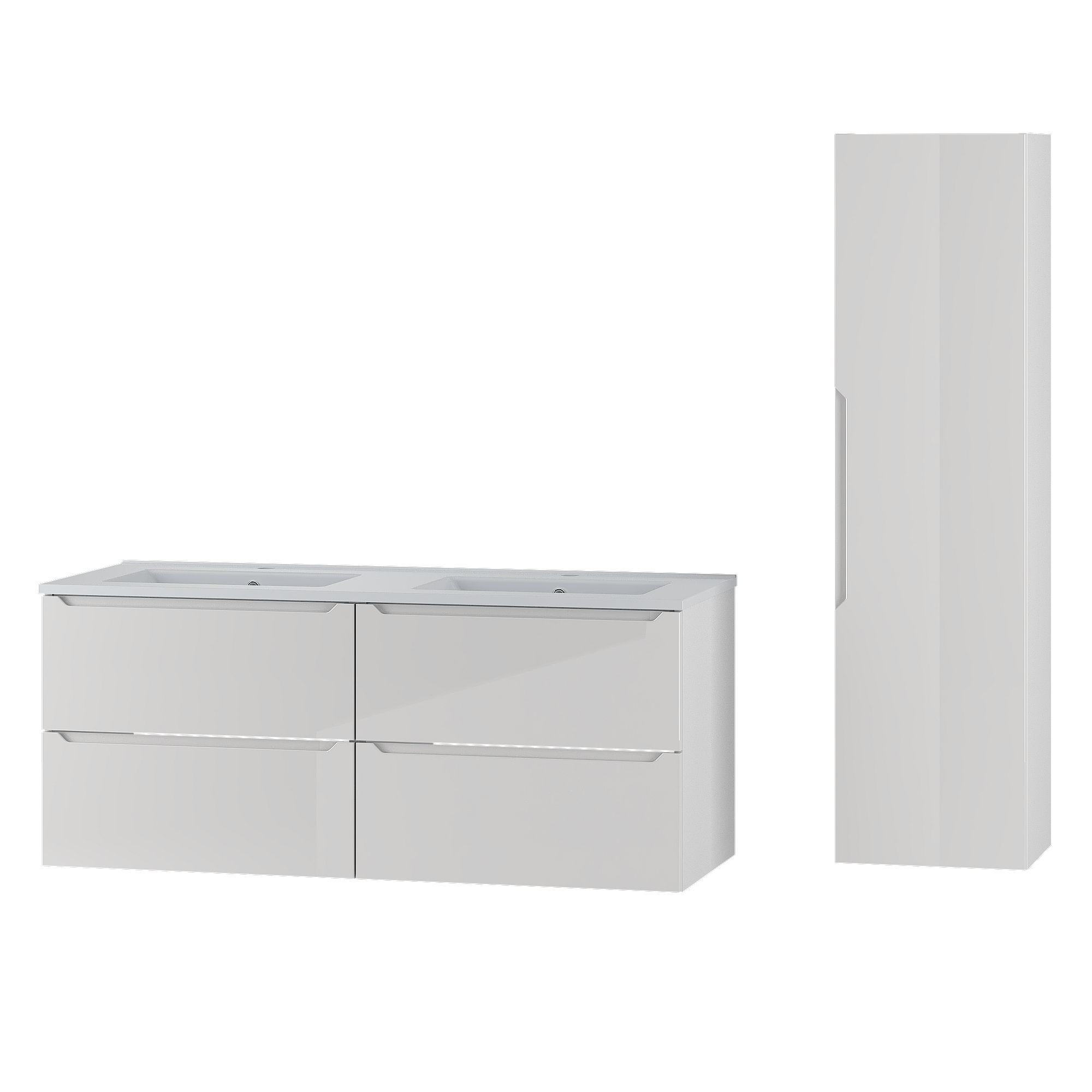 Szafka łazienkowa wisząca z podwójną umywalką wpuszczaną i słupkiem - Biały - 120 cm - SELITA