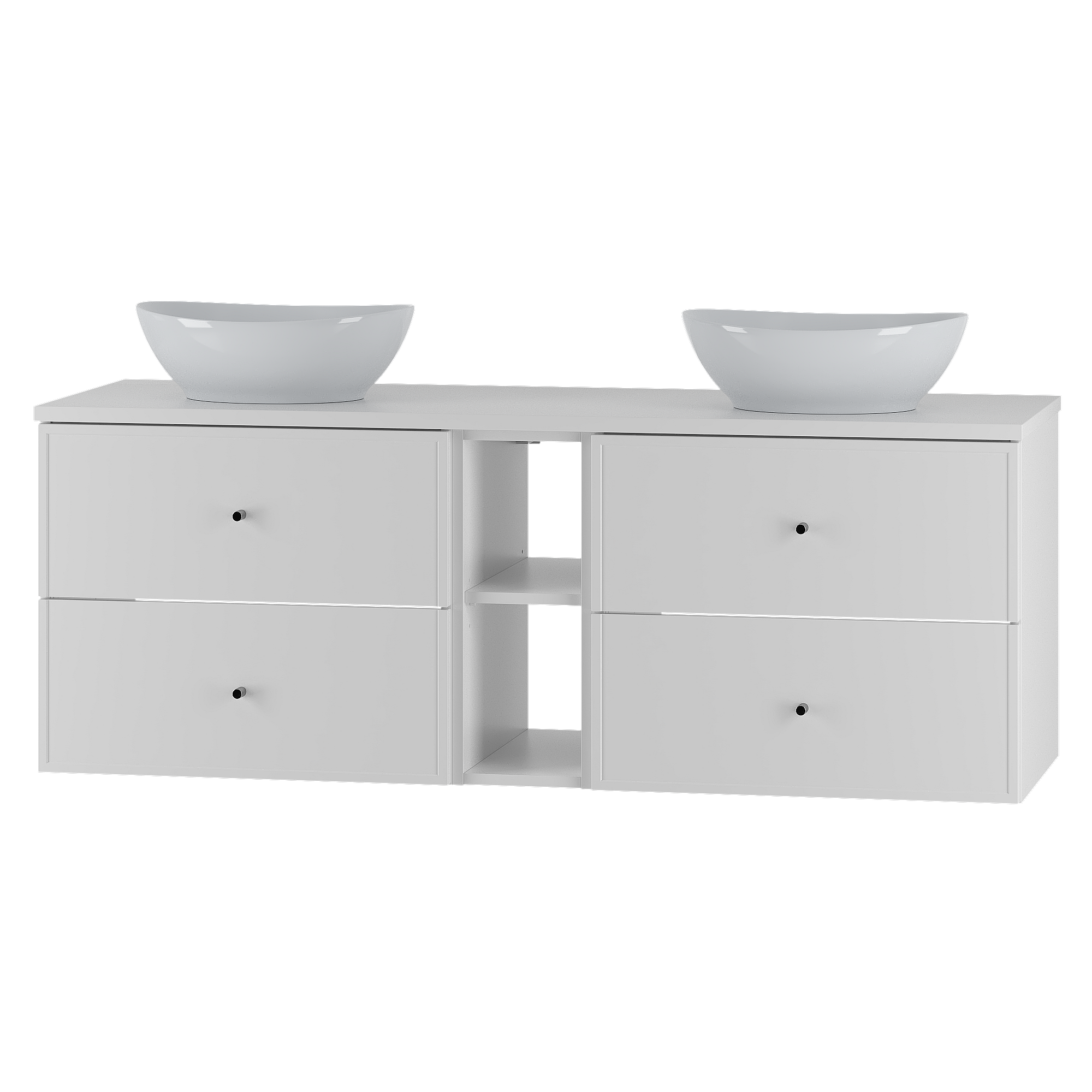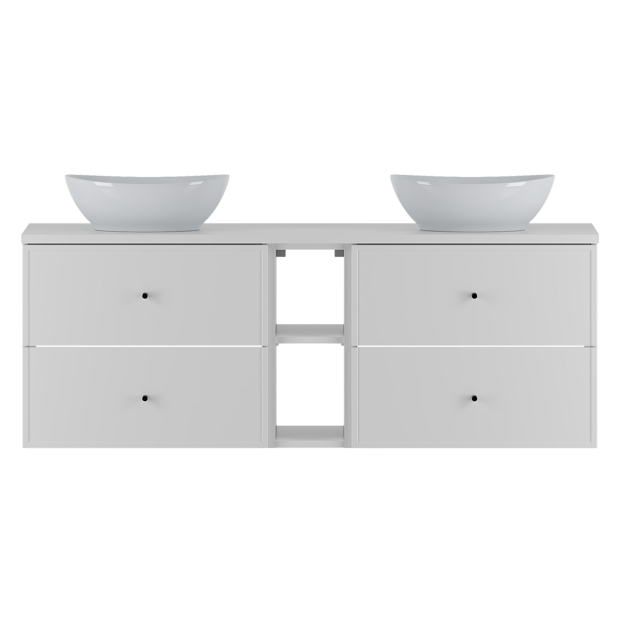 Szafka łazienkowa wisząca biała z dwoma umywalkami - szer. 150 cm - ISAURE II