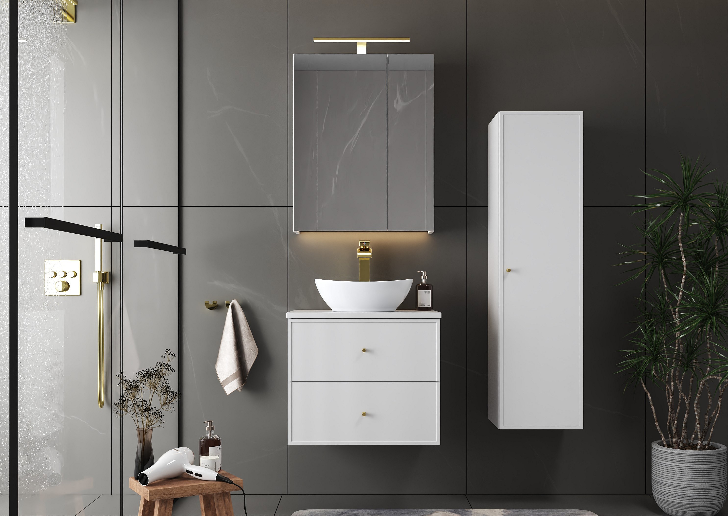 Biały Zestaw do Łazienki 60cm Szafka z Umywalką Pile