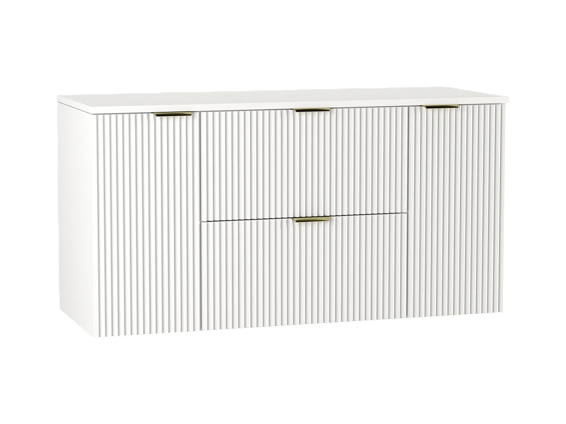 Biały Zestaw Łazienkowy 120cm Szafka Blat Słupek Ryflowane Fronty
