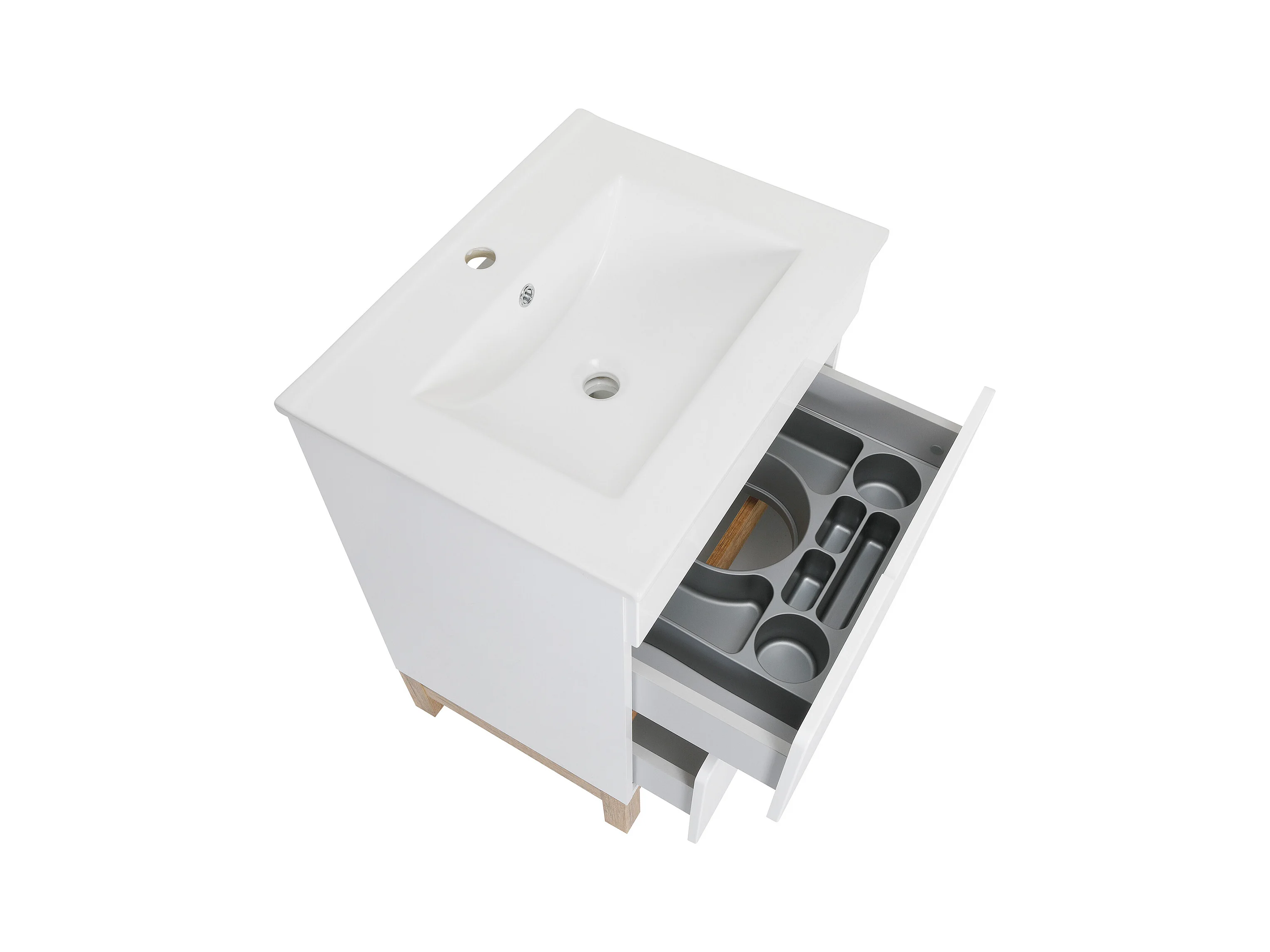 Biały Zestaw Łazienkowy 60cm Szafka z Umywalką Słupek Szafka z Lustrem Sol
