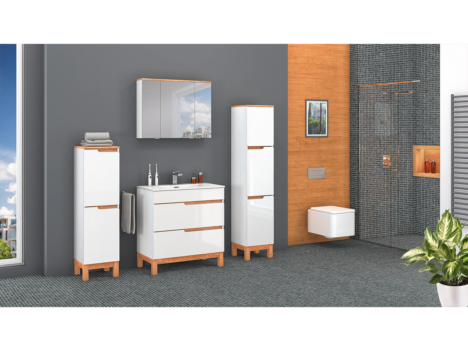 Biały Zestaw Mebli Łazienkowych 80cm Szafka z Umywalką Słupek na Mopa Półsłupek Spek