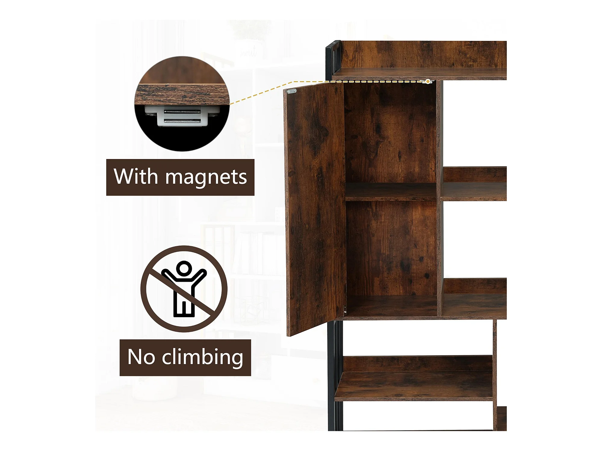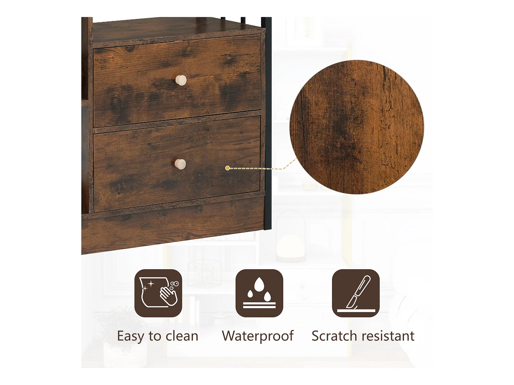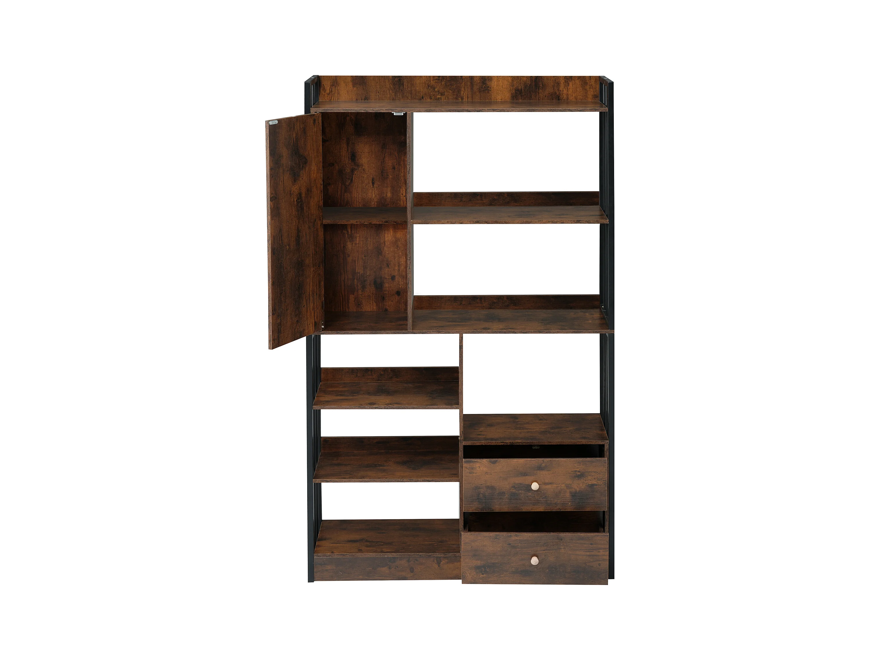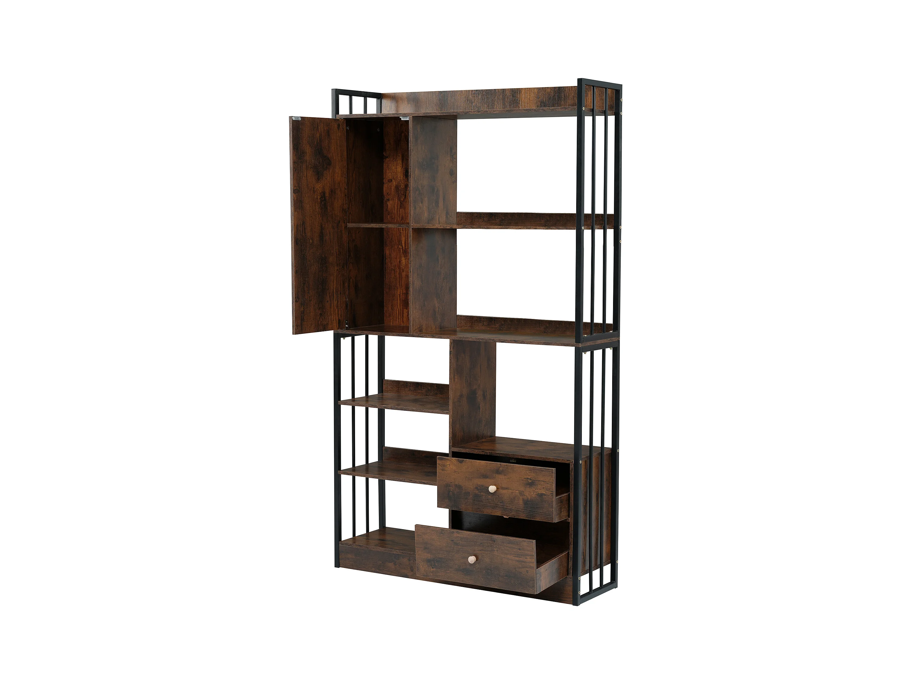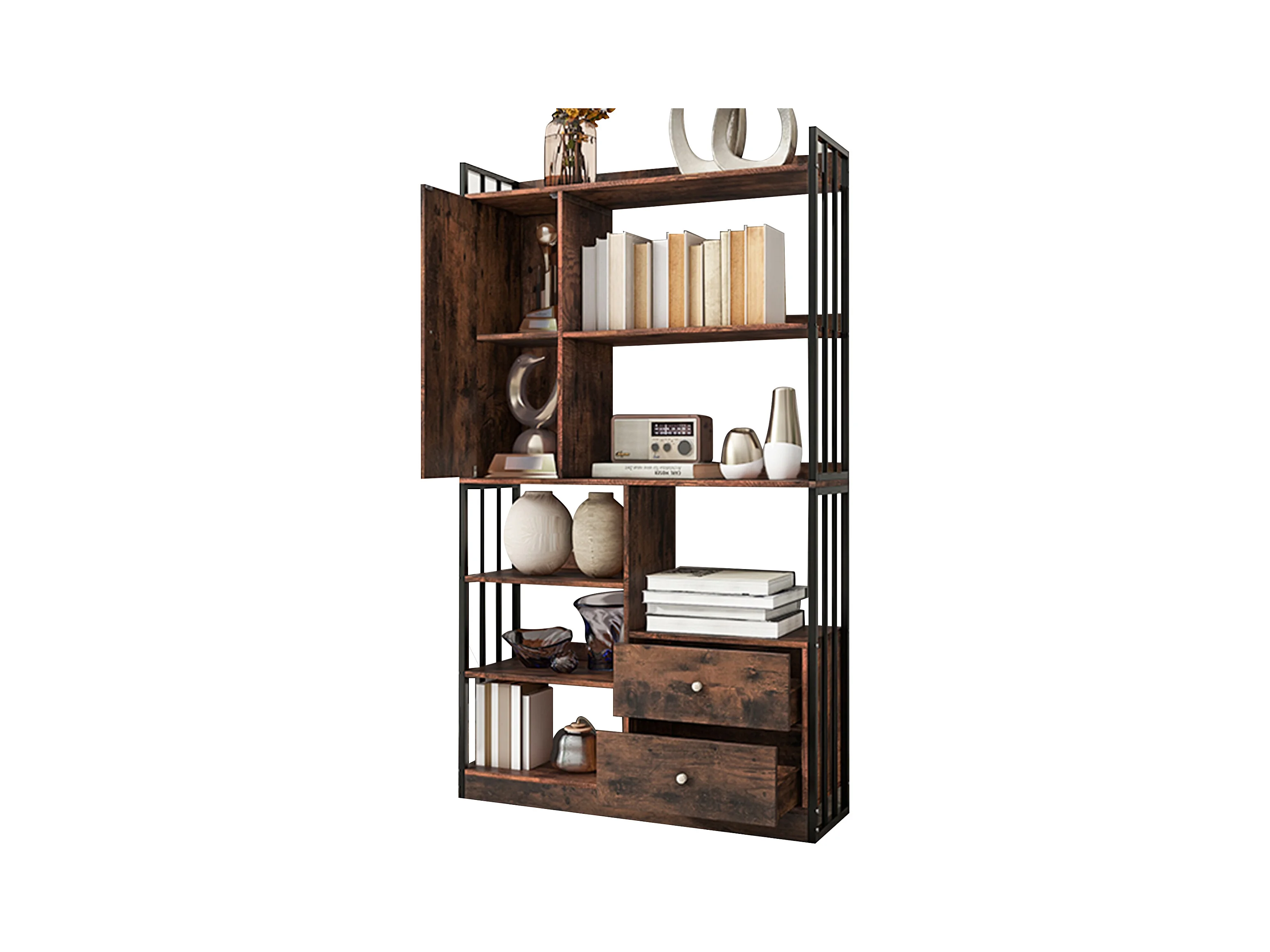 Biblioteka z 5 półkami, 1 drzwiami i 2 szufladami - styl industrialny - Brązowa i Czarna