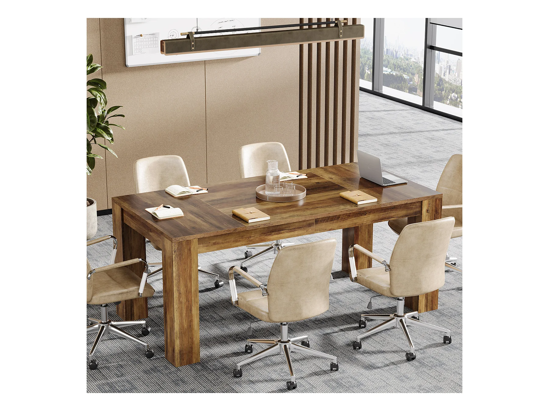 Biurko 200 cm dla 2 osób z solidną geometryczną konstrukcją metalową - Stół konferencyjny lub seminaryjny dla 8-10 osób - Rustykalny brąz