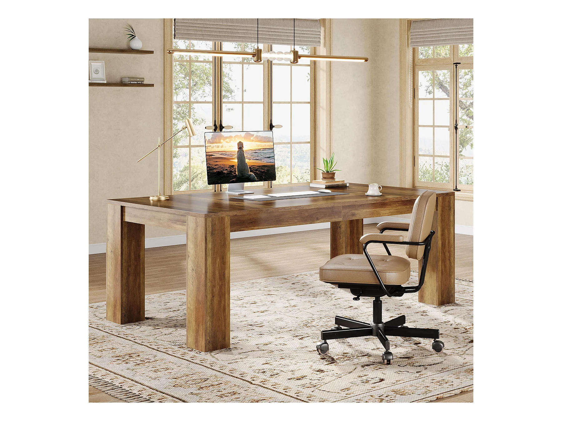 Biurko komputerowe, stolik pod laptopa, podwójne długie biurko do domu, biura, sypialni, 200 x 70 x 75 cm, rustykalny brąz