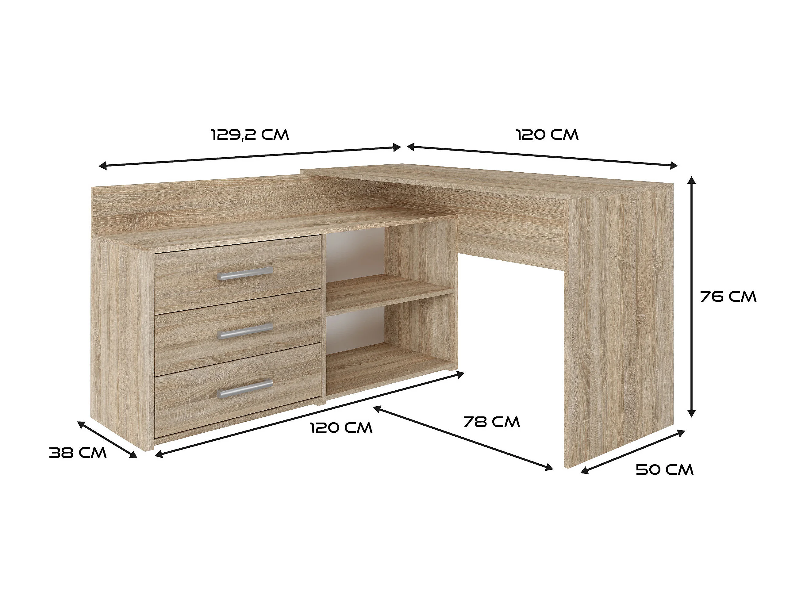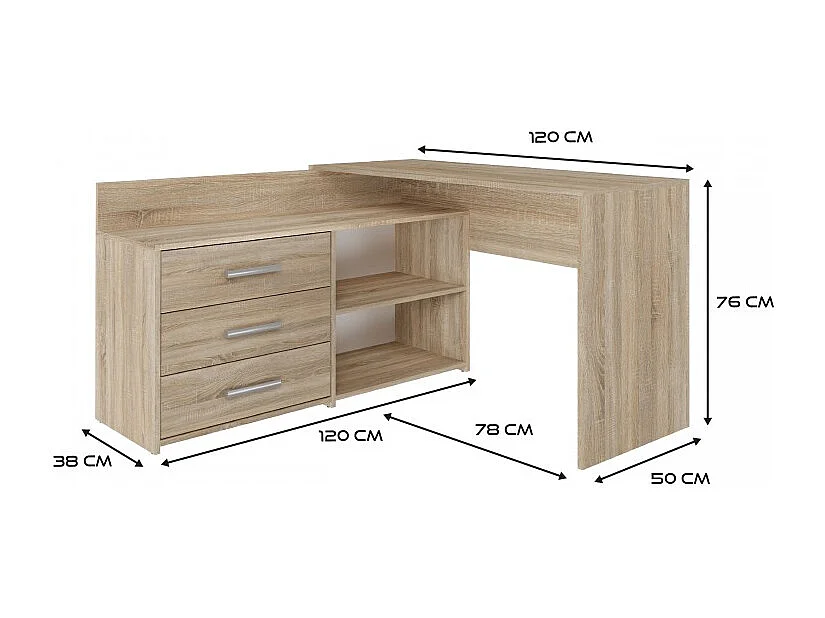 Biurko DANY |Dąb Sonoma | 120x50x76 cm |Narożne z 3 Szufladami