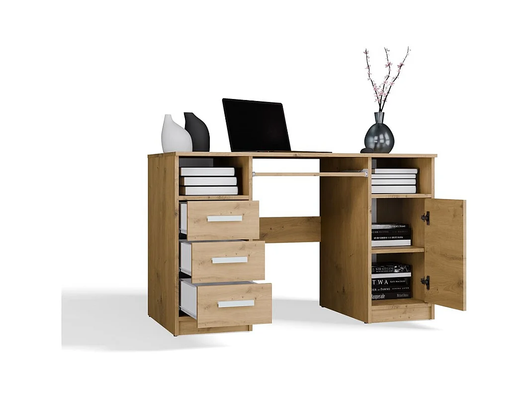 Biurko ADA | Dąb Artisan |4 Szuflady Szafka Pólki | 125x55x75 cm | Do Biura/Pokoju