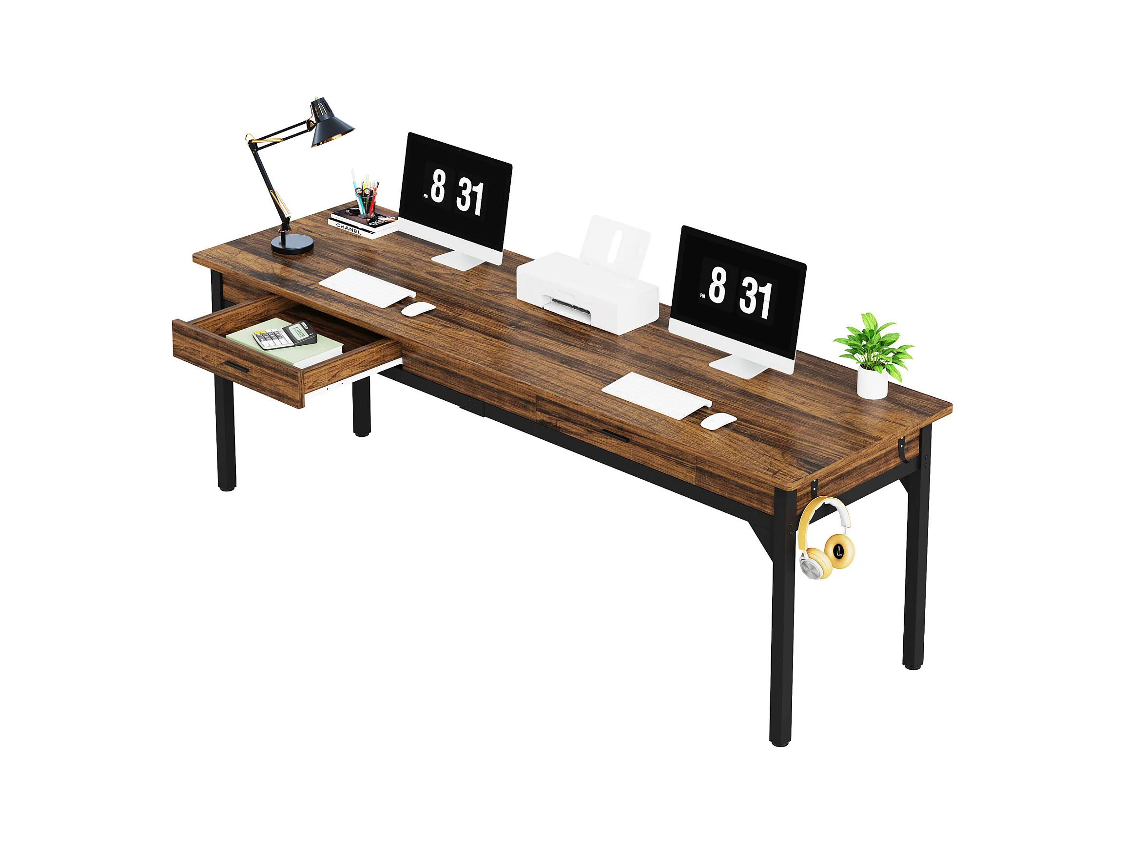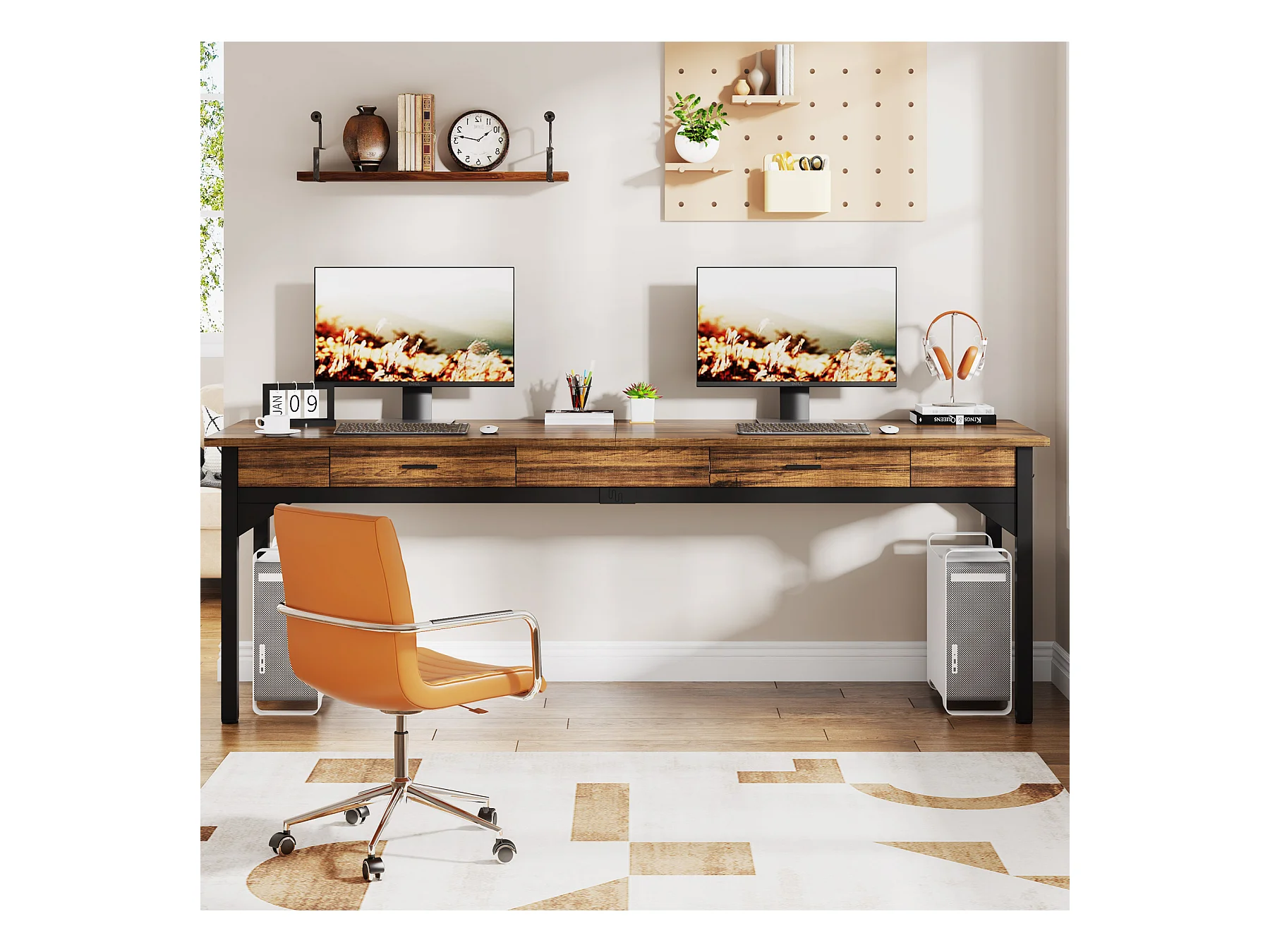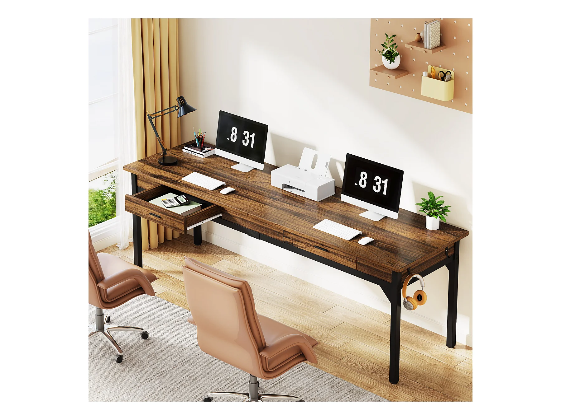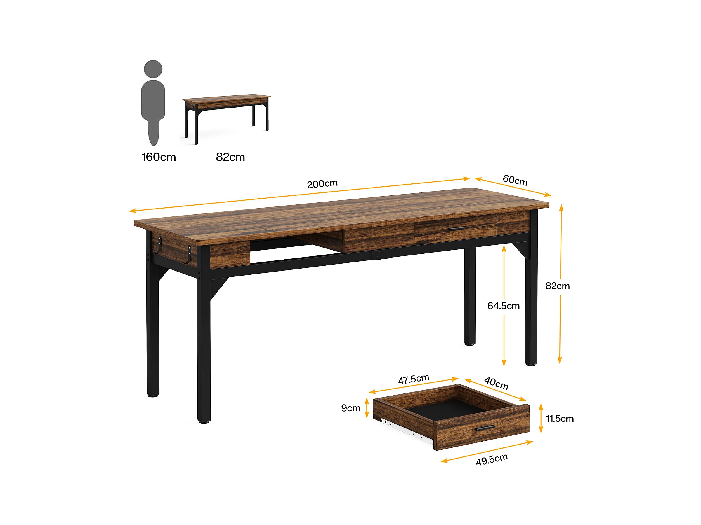 Biurko komputerowe, biurko do nauki, podwójne długie biurko z 2 blatami roboczymi, 200 x 60 x 82 cm, rustykalny brąz