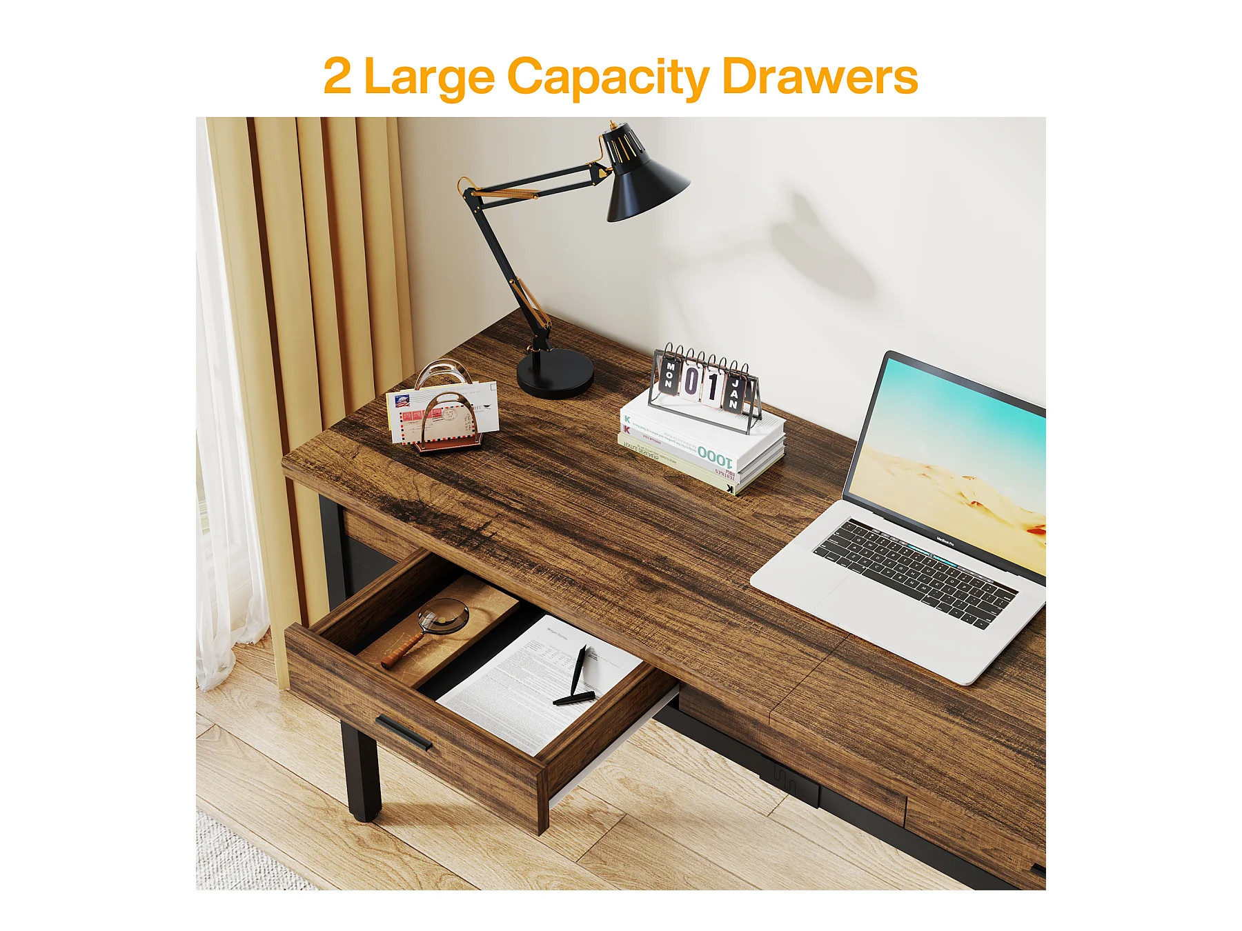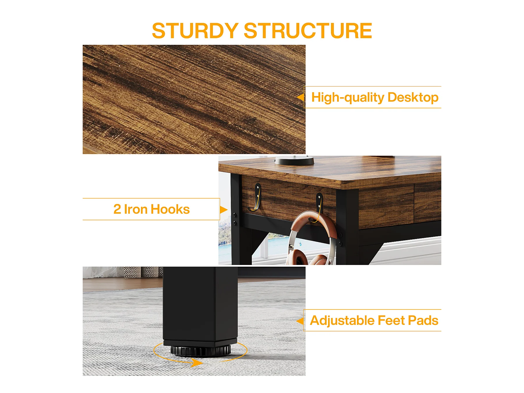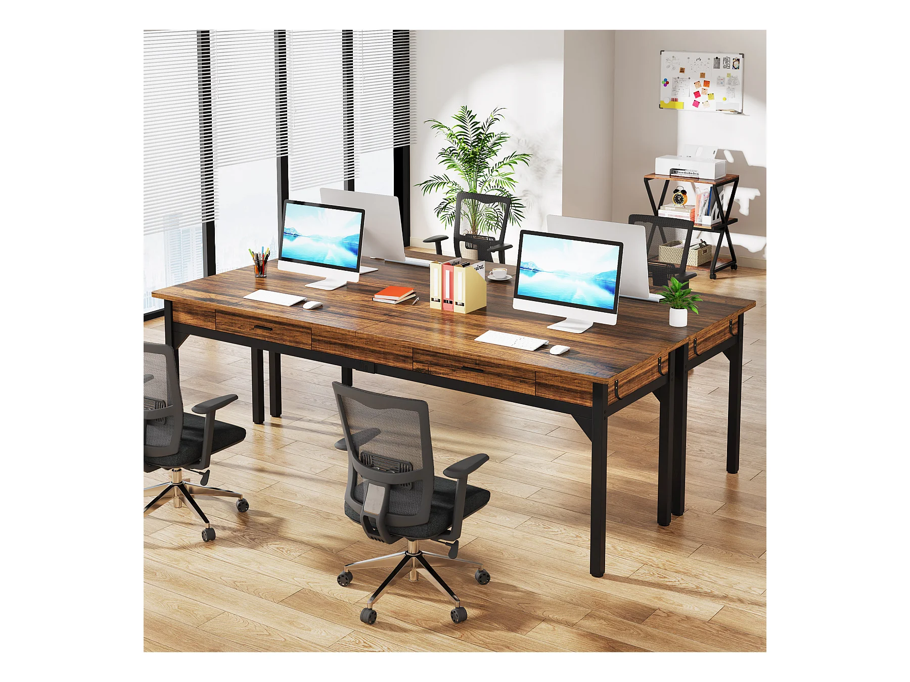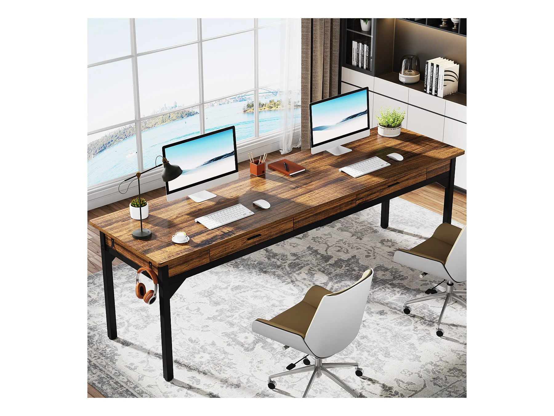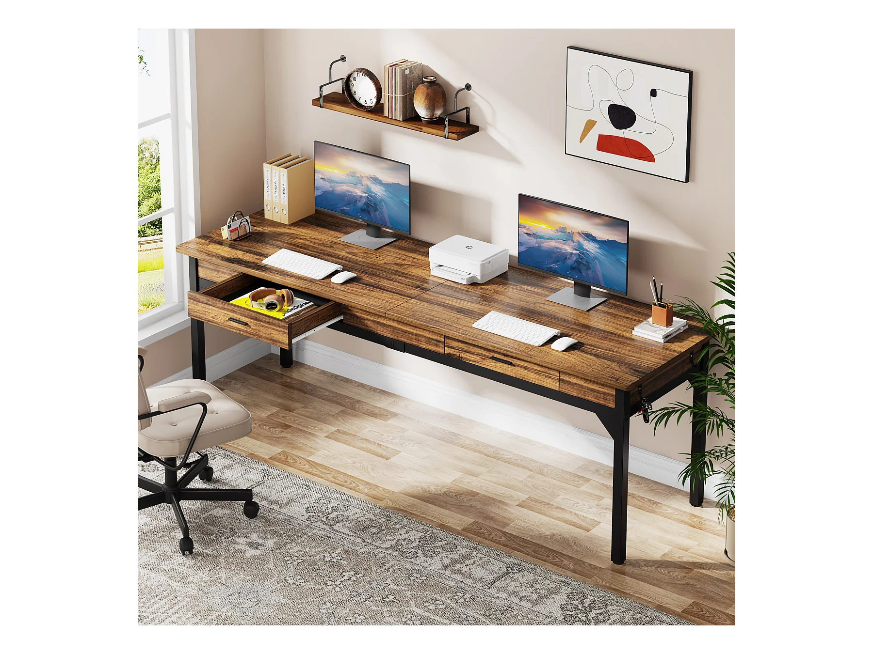 Biurko komputerowe, biurko do nauki, podwójne długie biurko z 2 blatami roboczymi, 200 x 60 x 82 cm, rustykalny brąz