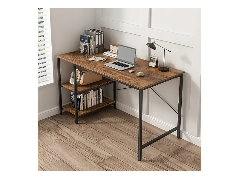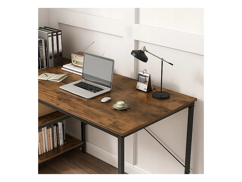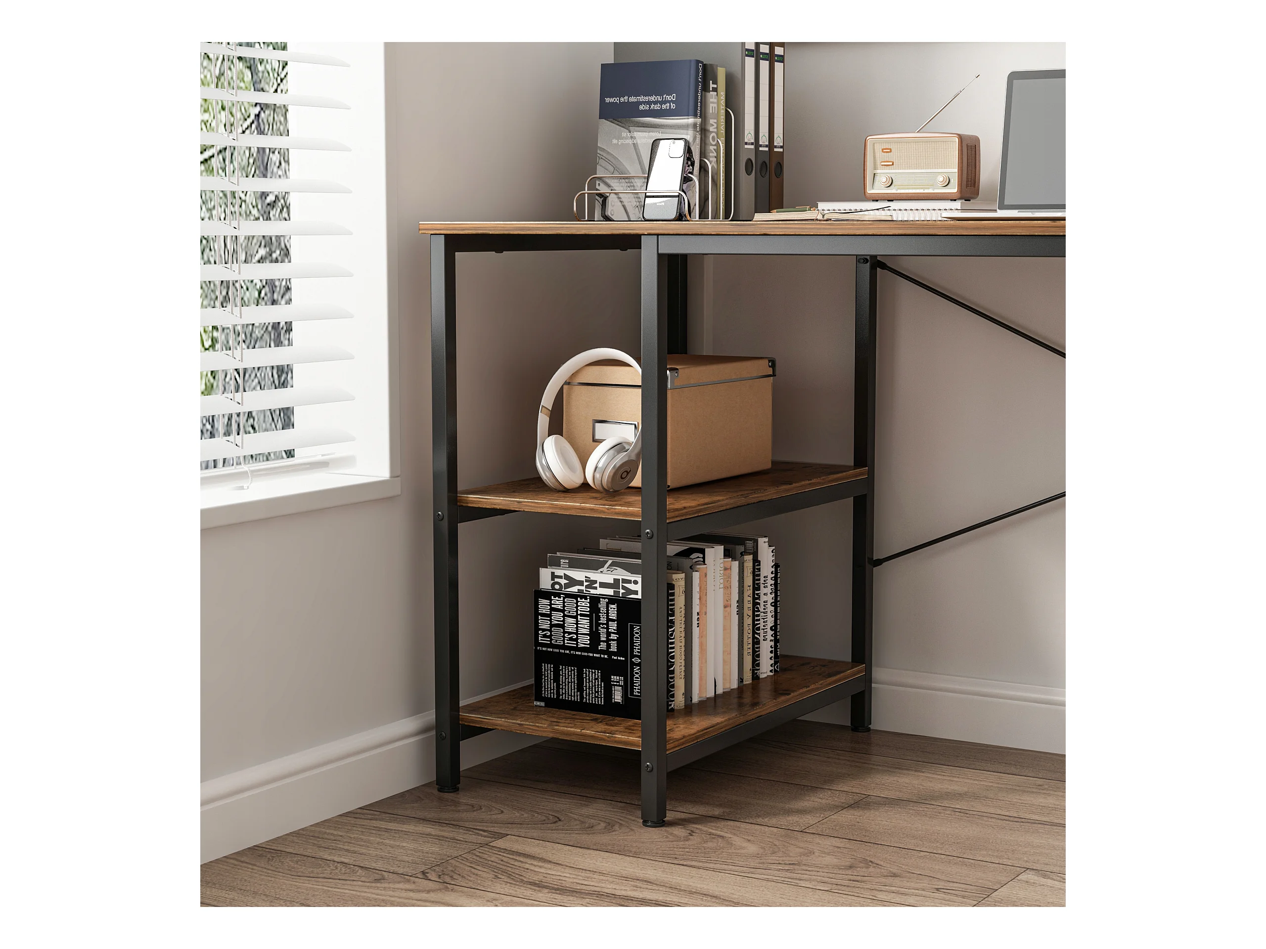 Biurko komputerowe w kształcie litery L z 3 szufladami, rustykalny brąz