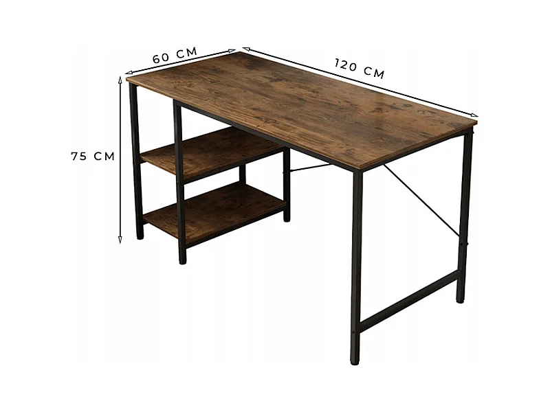 Biurko Komputerowe Metalowe Gamingowe Loftowe Industrialne 2 Półki 120 Cm