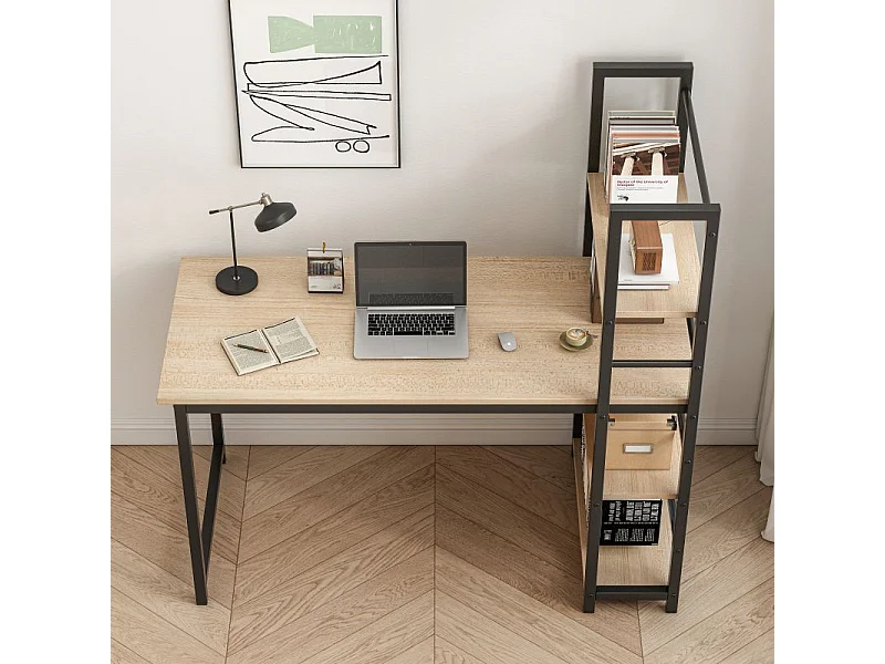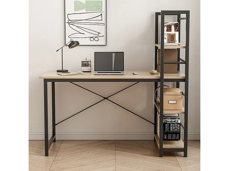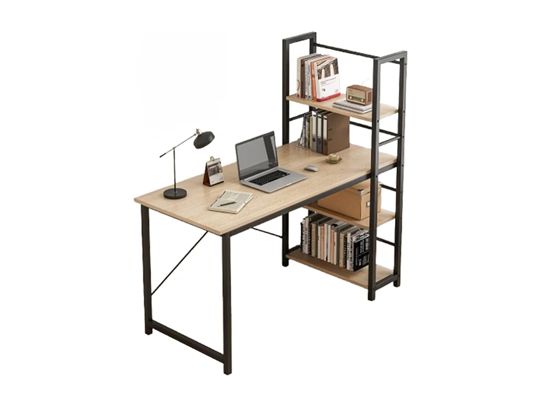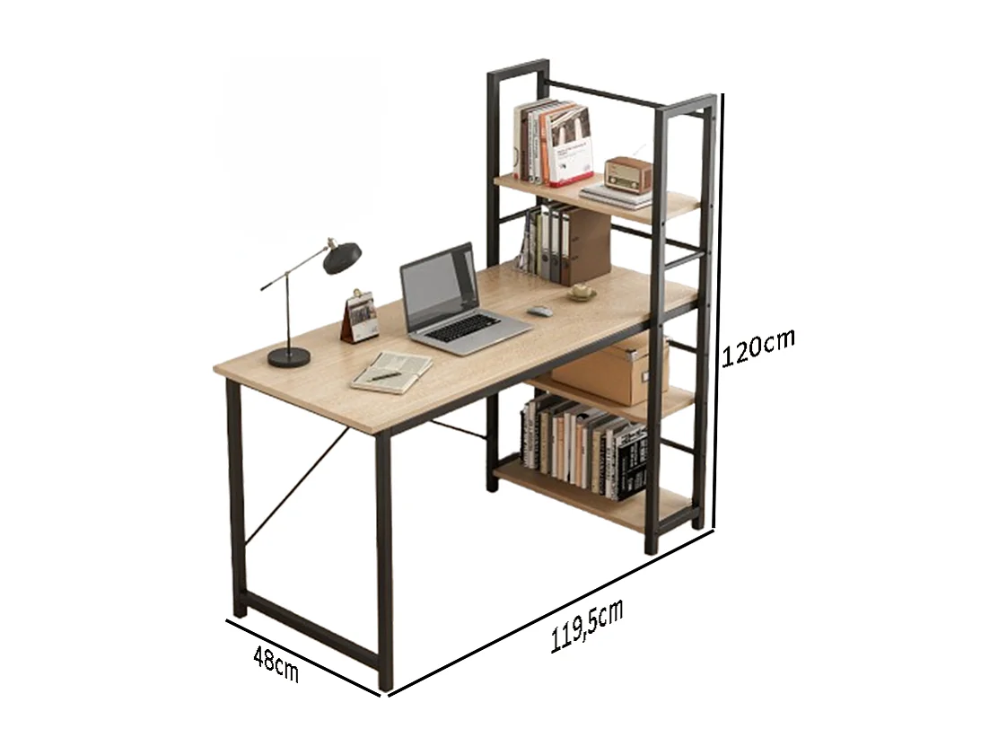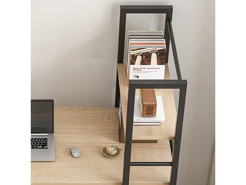 Biurko komputerowe z regałem półkami nowoczesne metalowe jasny brąz