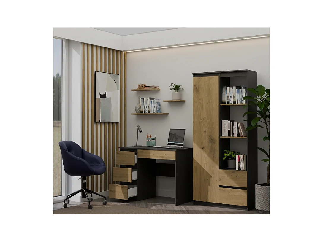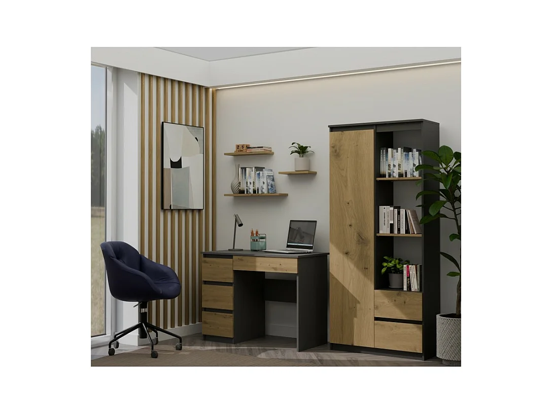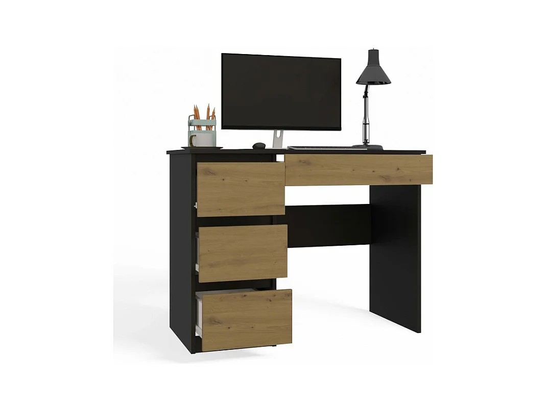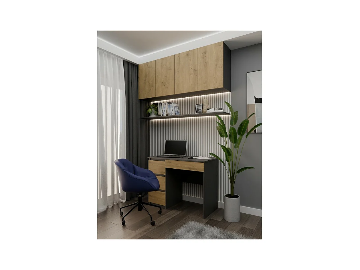 Biurko Mijas Lewe | Antracyt/Dąb Artisan |4 Szuflady | 98x51x76 cm | Do Pokoju/Biura