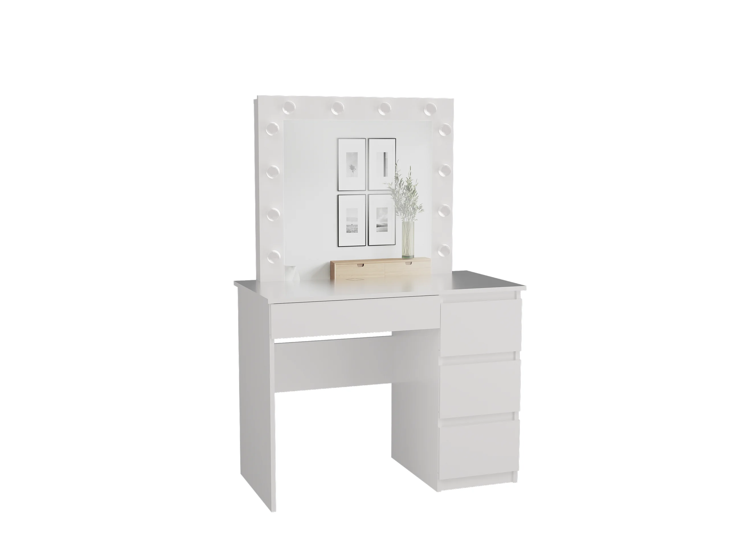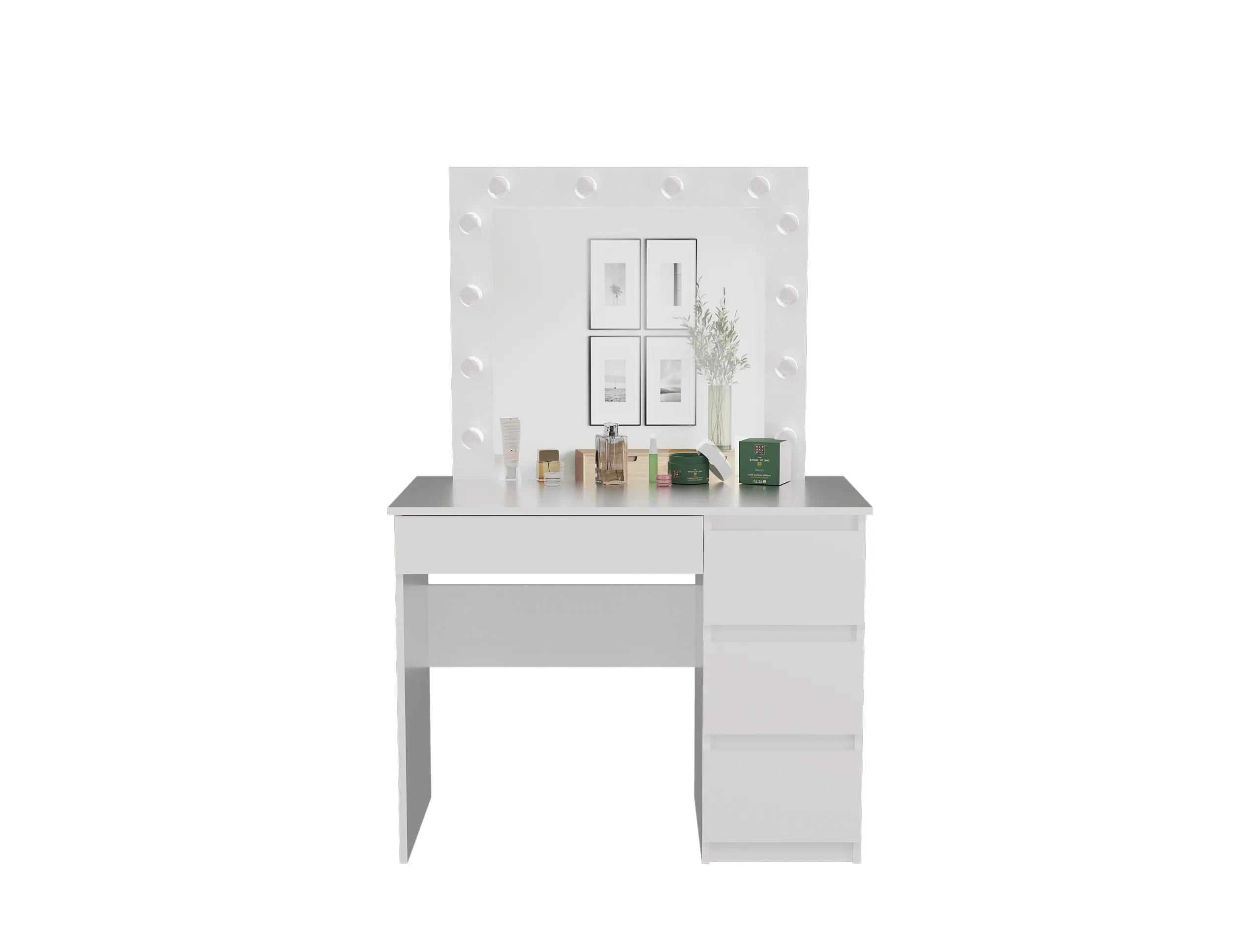 Biurko Mijas Prawe| Lustro LED Marina | Białe | 98x51x146 |Toaletka z Lustrem