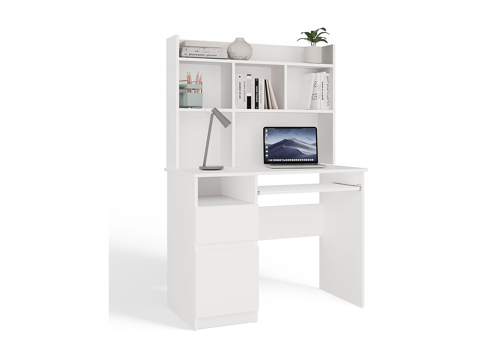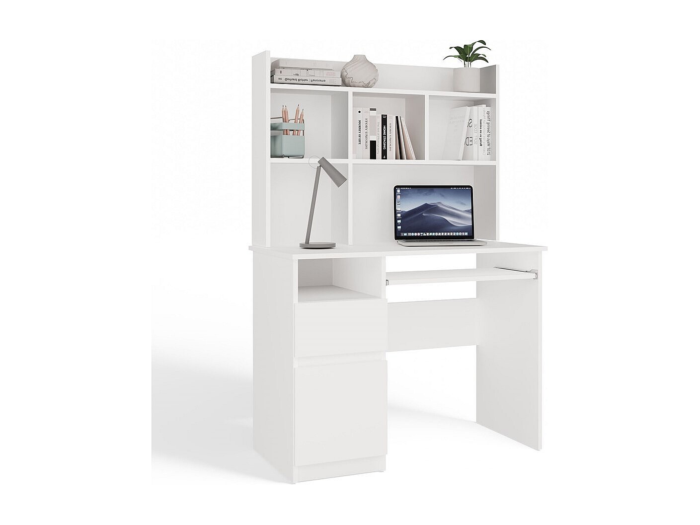 Biurko PORTO Lewe | Białe | 98x51x145 cm | Biurko z Nadstawką