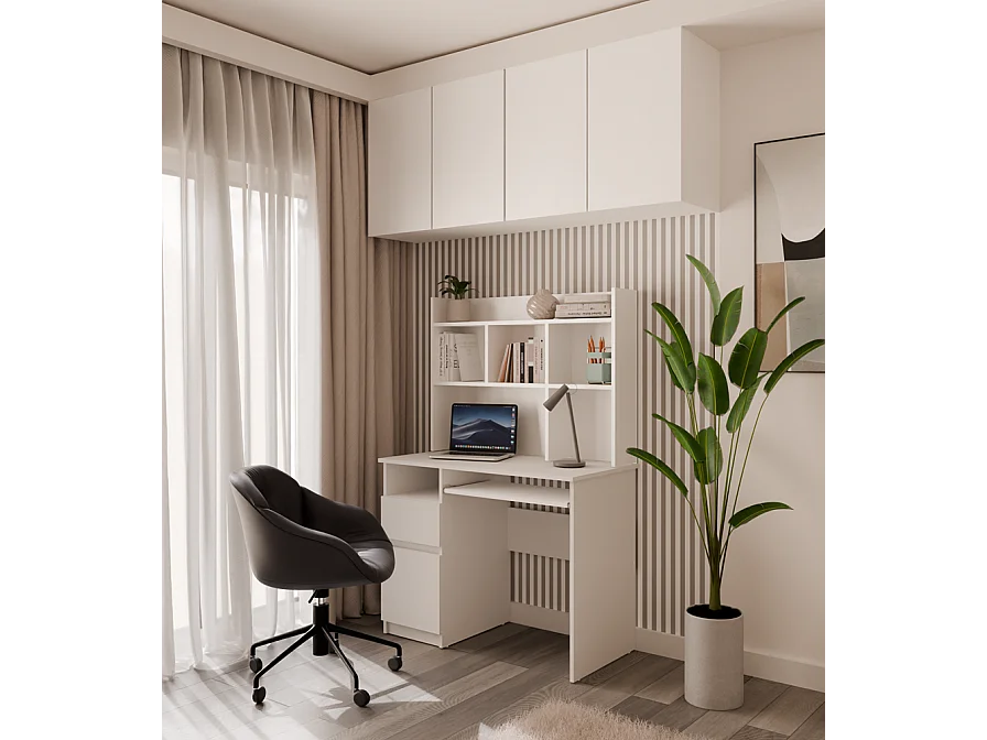 Biurko MIJAS z Nadstawką Lewe | Białe | 98x51x146 | 4 Szuflady