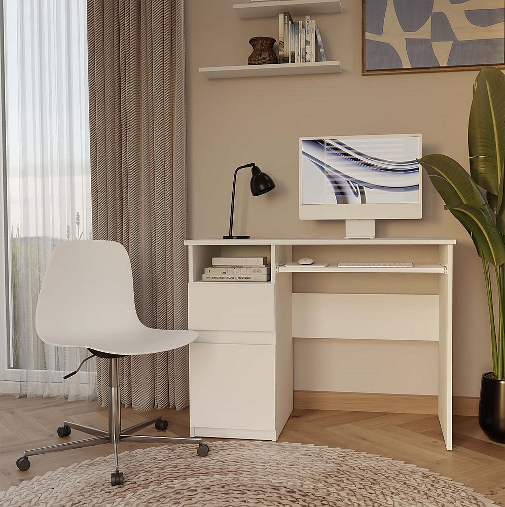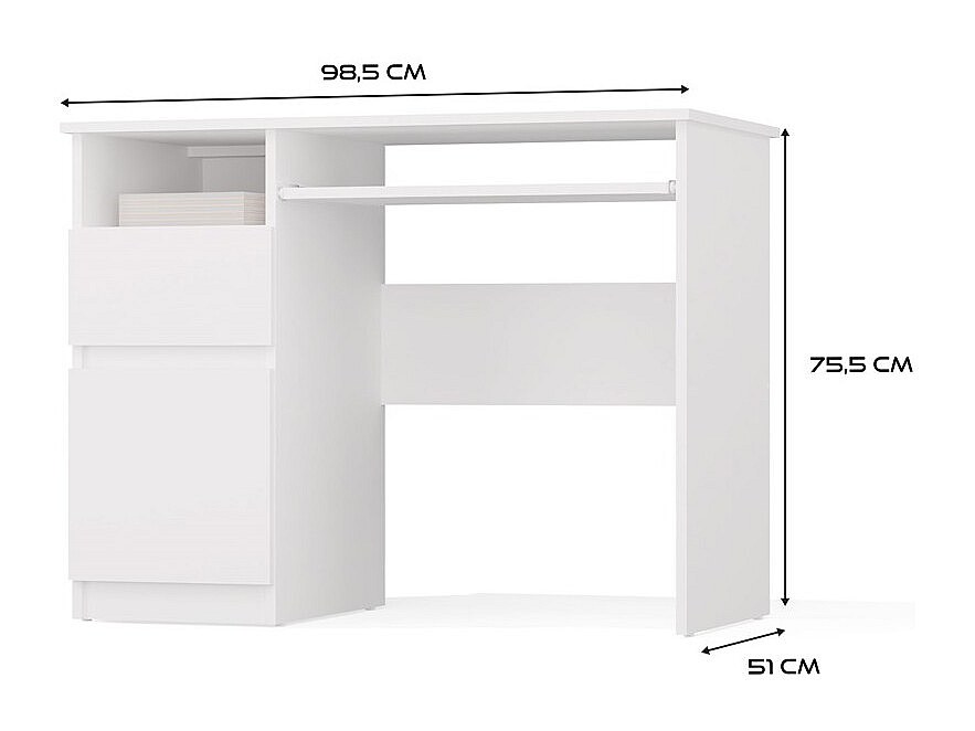 Biurko PORTO Lewe | Białe | Komputerowe z Szufladą | 98,5x51x75,5 cm | Nowoczesne