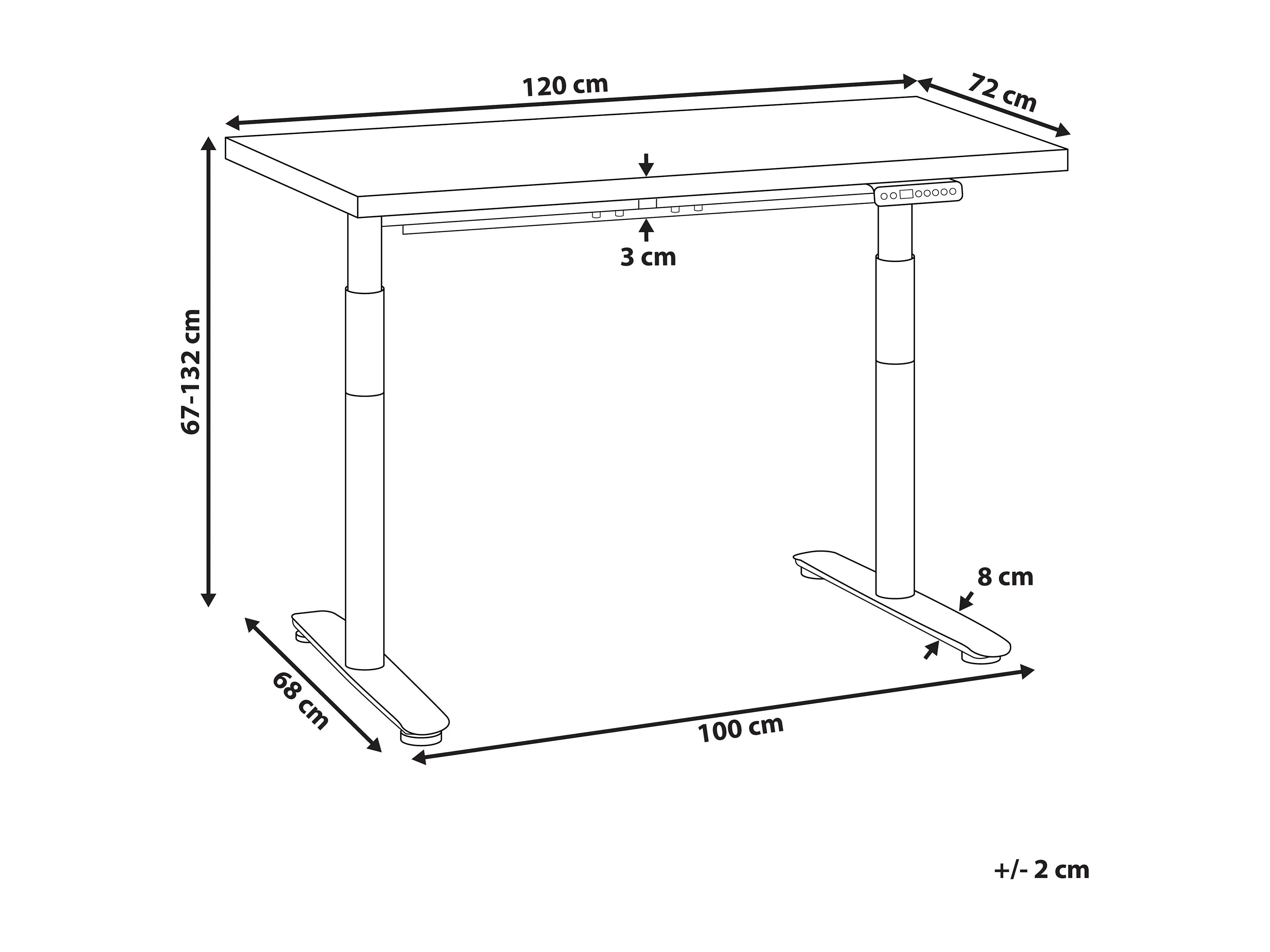Biurko regulowane elektrycznie 120 x 72 cm czarno-białe DESTINES