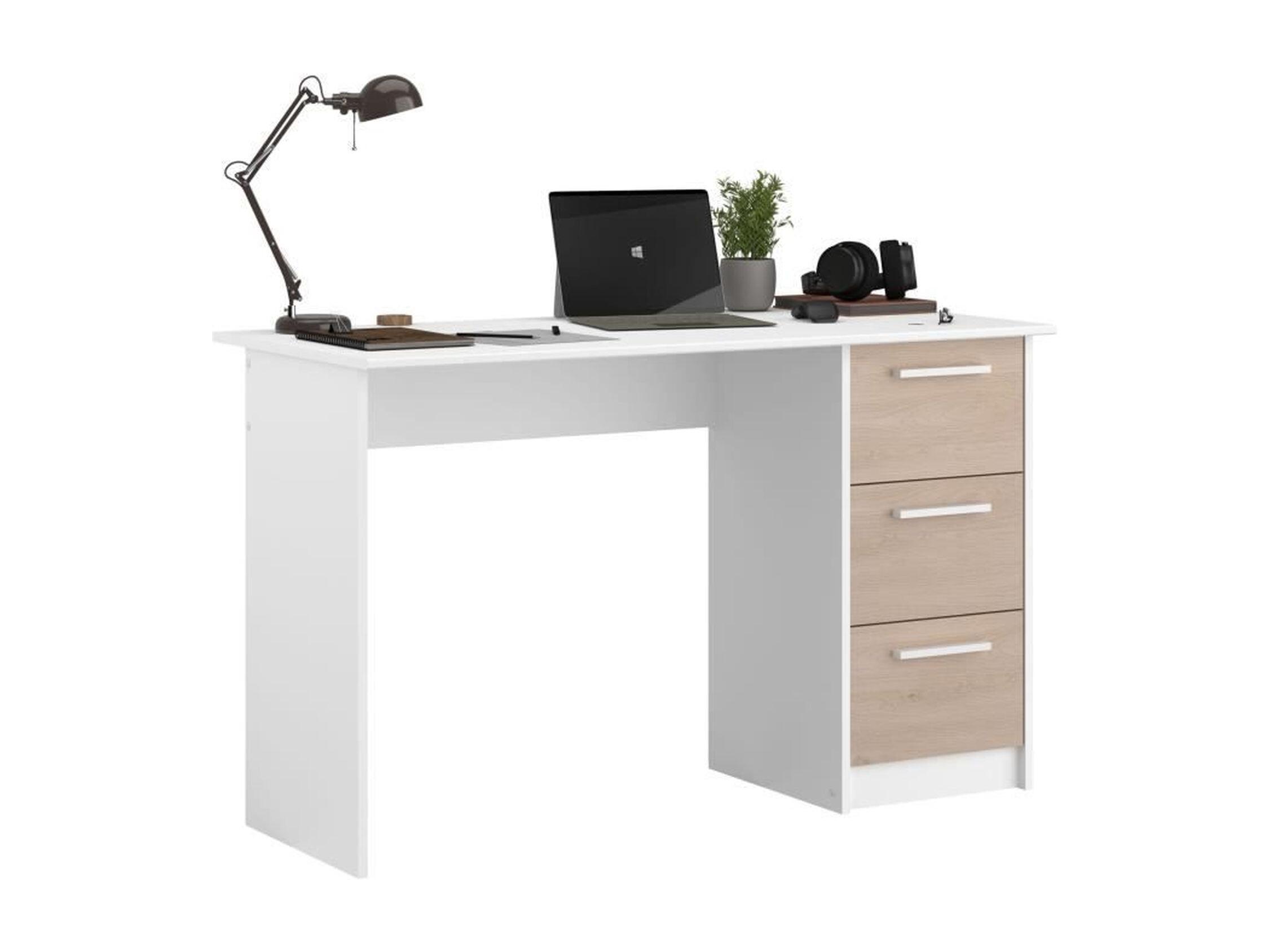 Biurko z 3 szufladami w dekorze dębu i białym, Essentiel, Wyprodukowane we Francji - Parisot