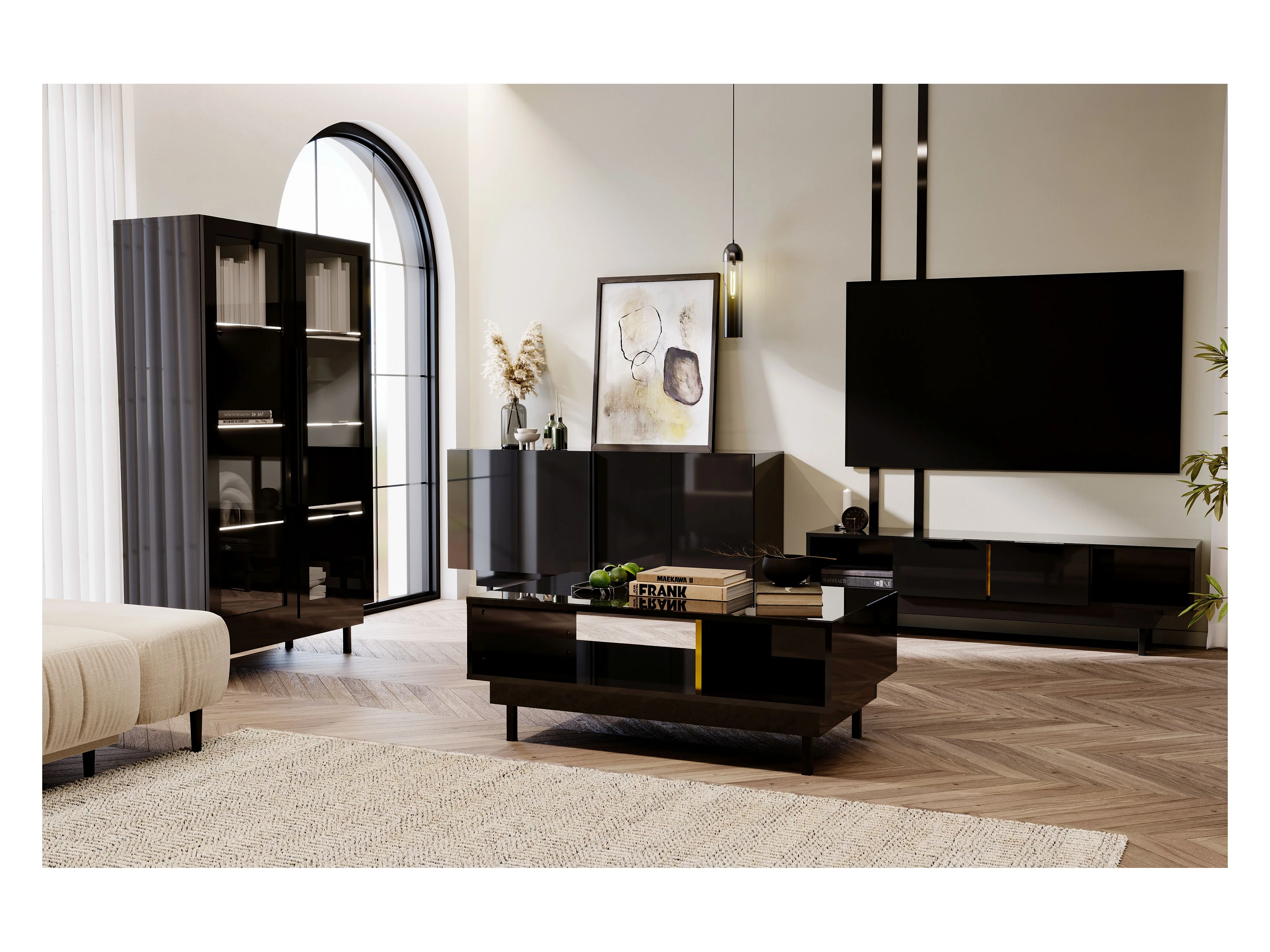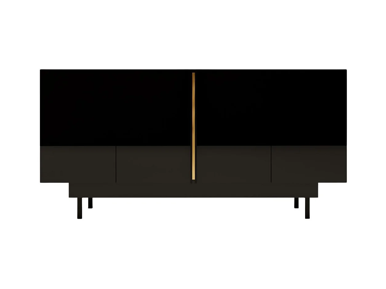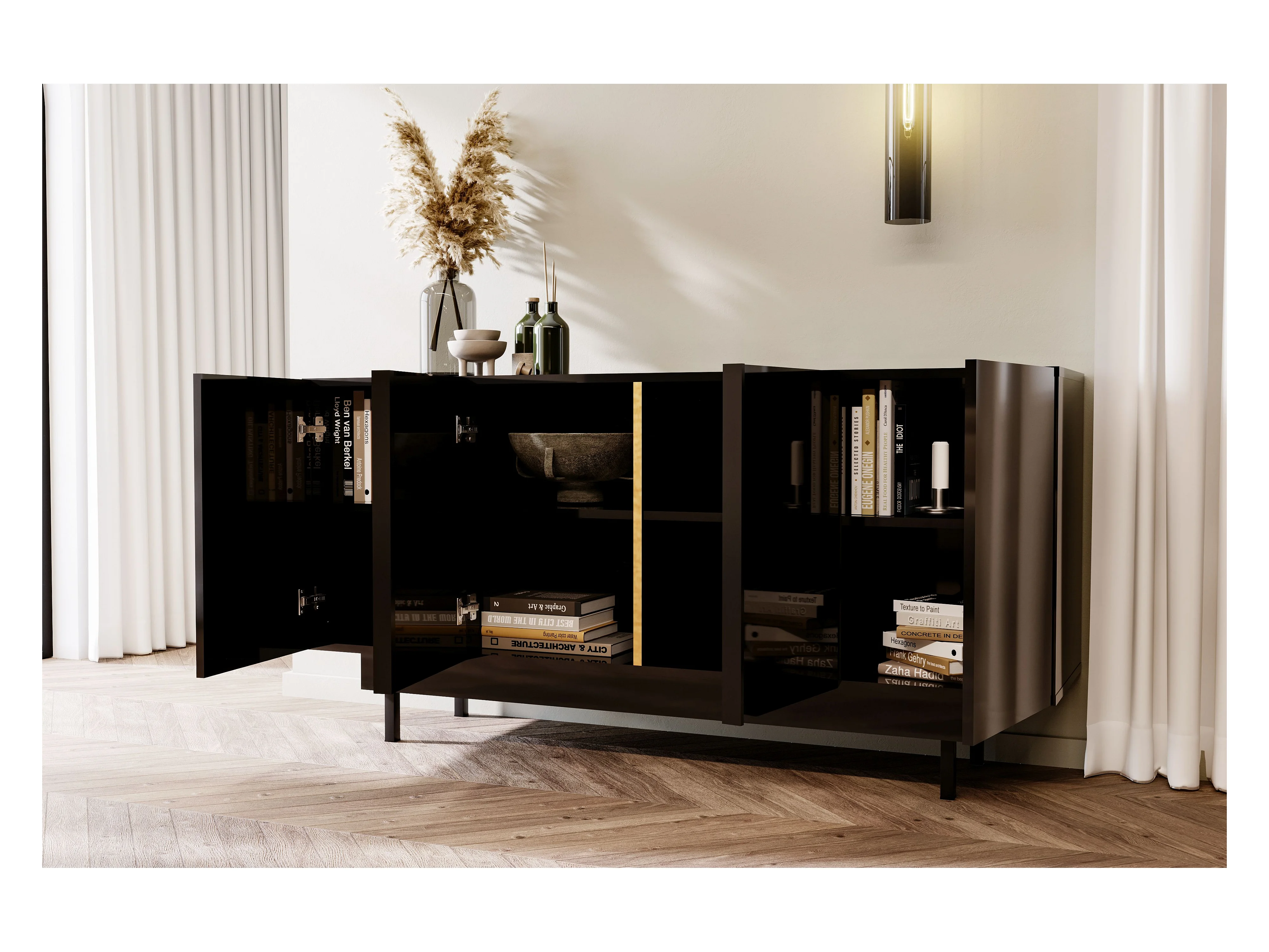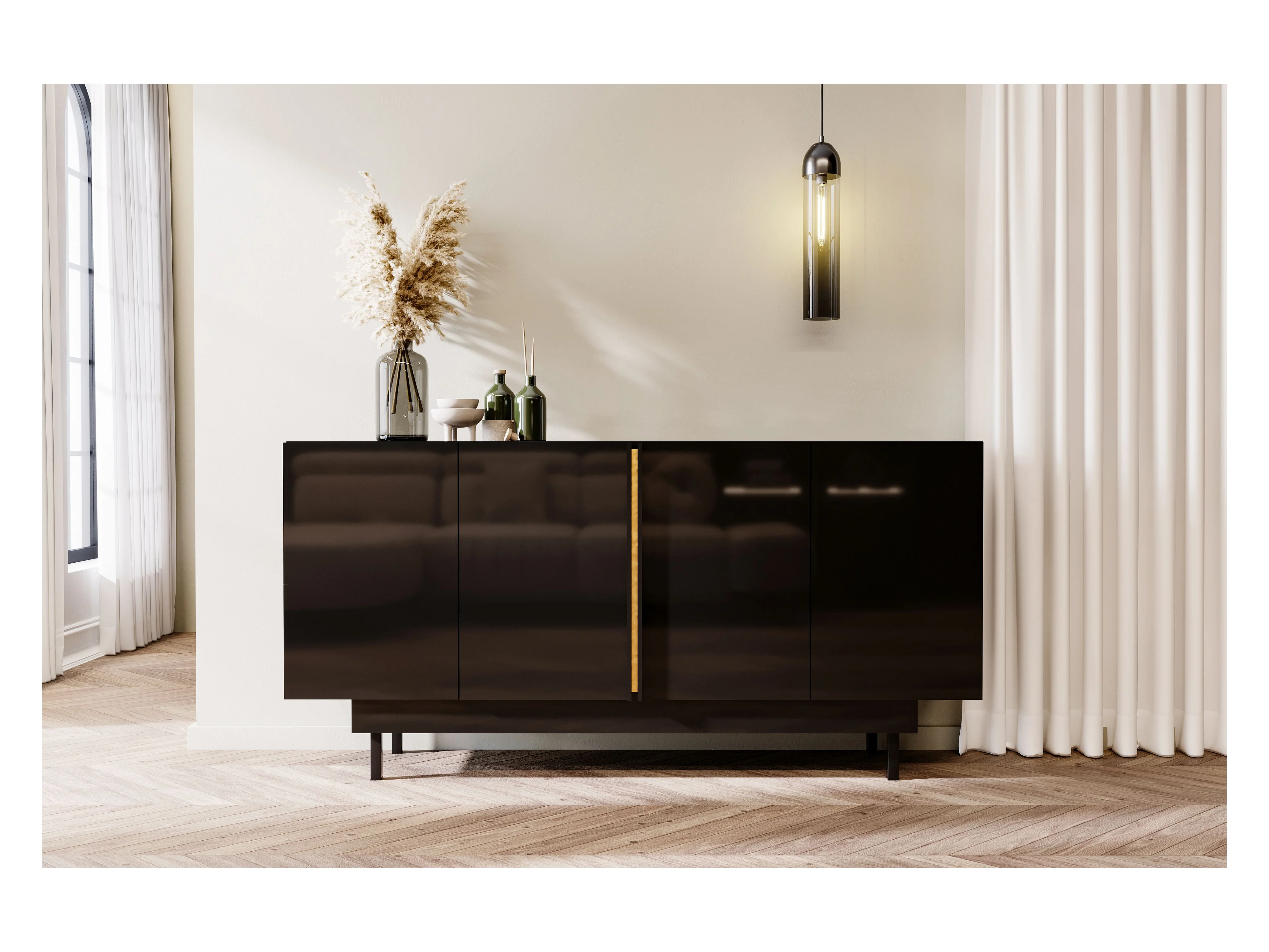 Błyszczący czarny bufet Dancan ARTEMISA z dodatkami w kolorze złota - Nowoczesny i elegancki design z systemem Push to Open