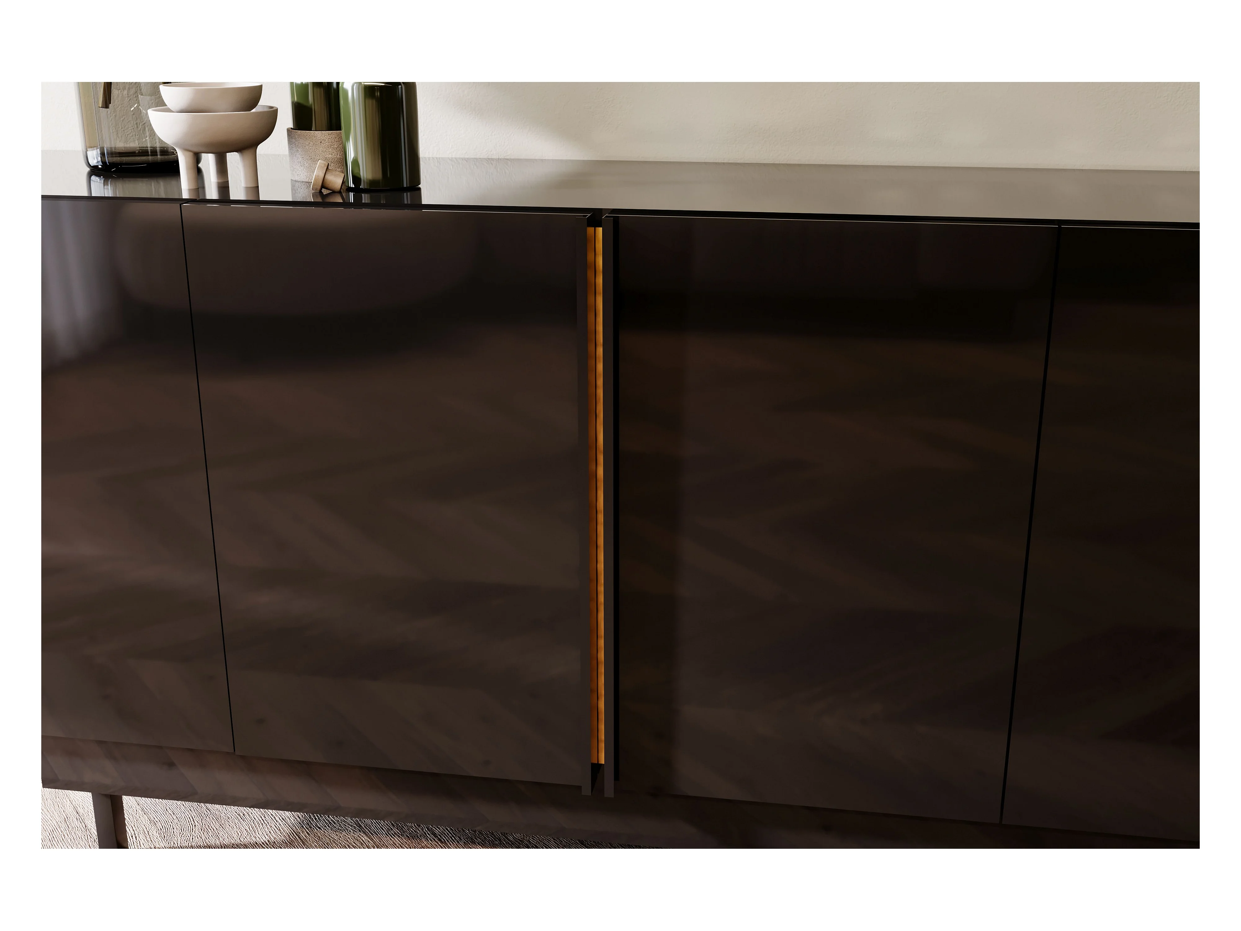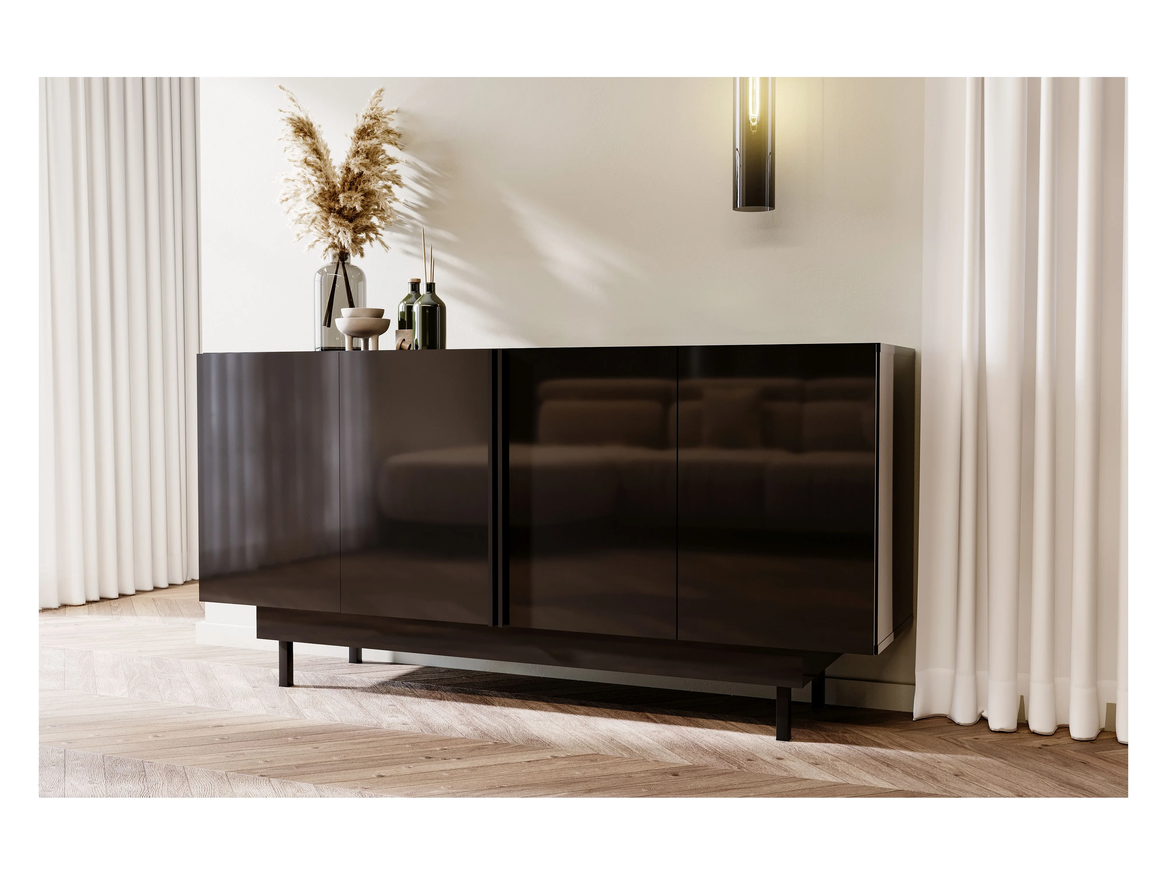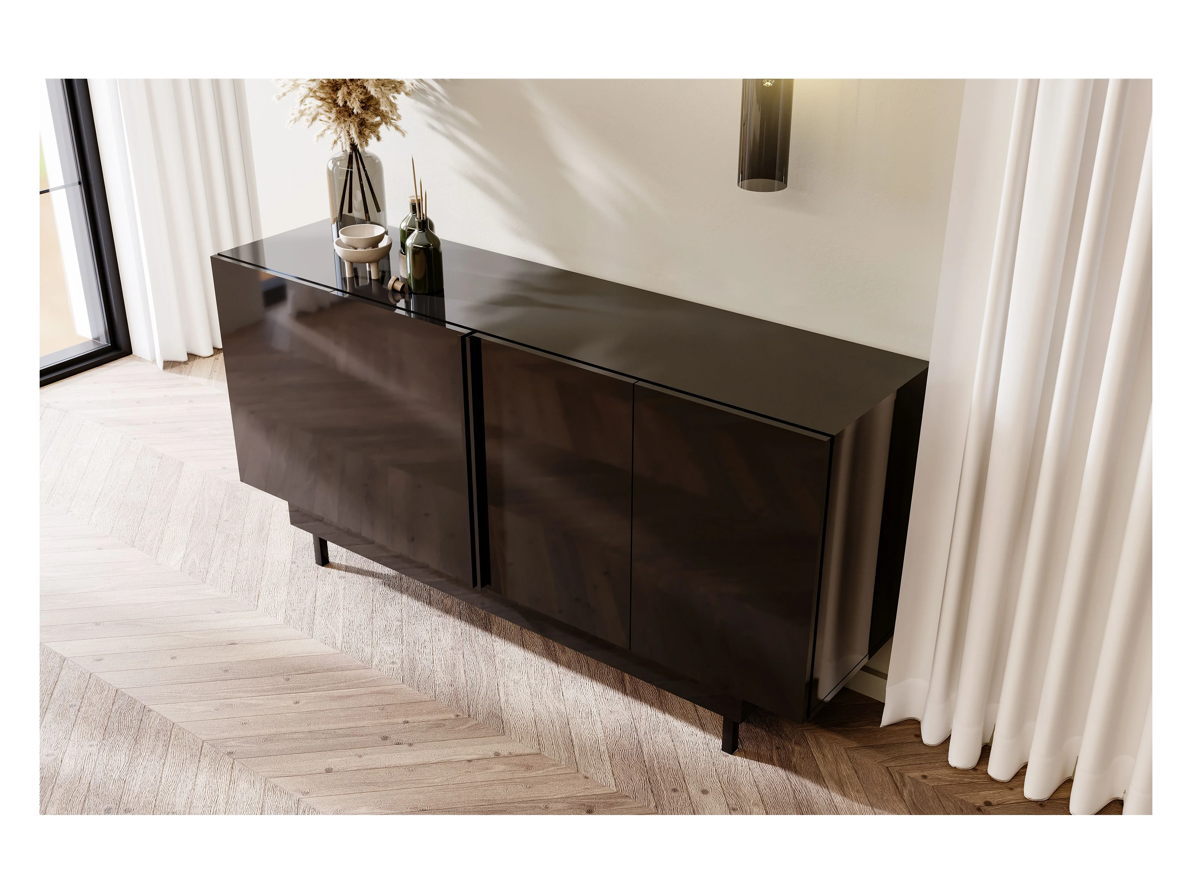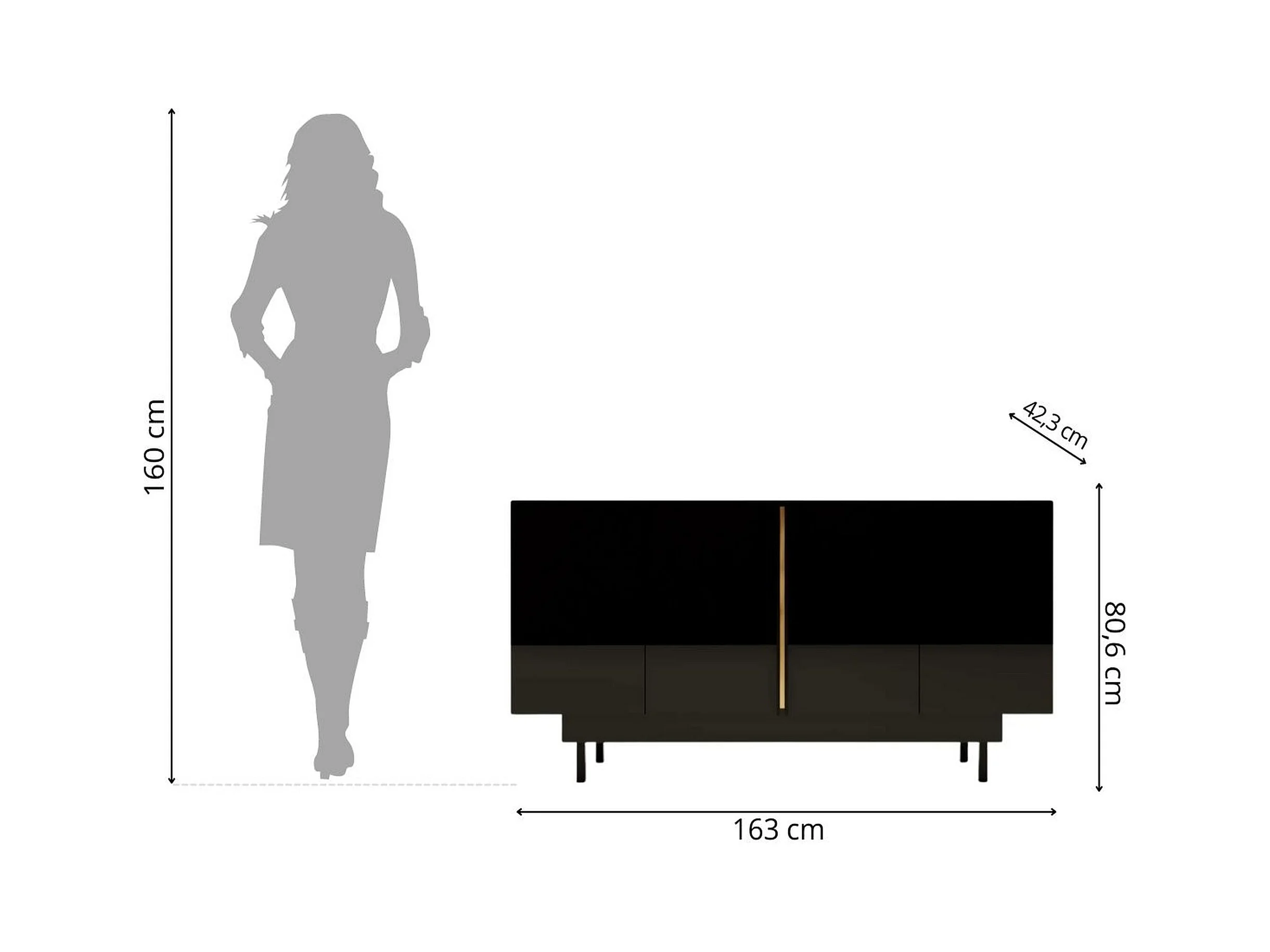 Błyszczący czarny bufet Dancan ARTEMISA z dodatkami w kolorze złota - Nowoczesny i elegancki design z systemem Push to Open