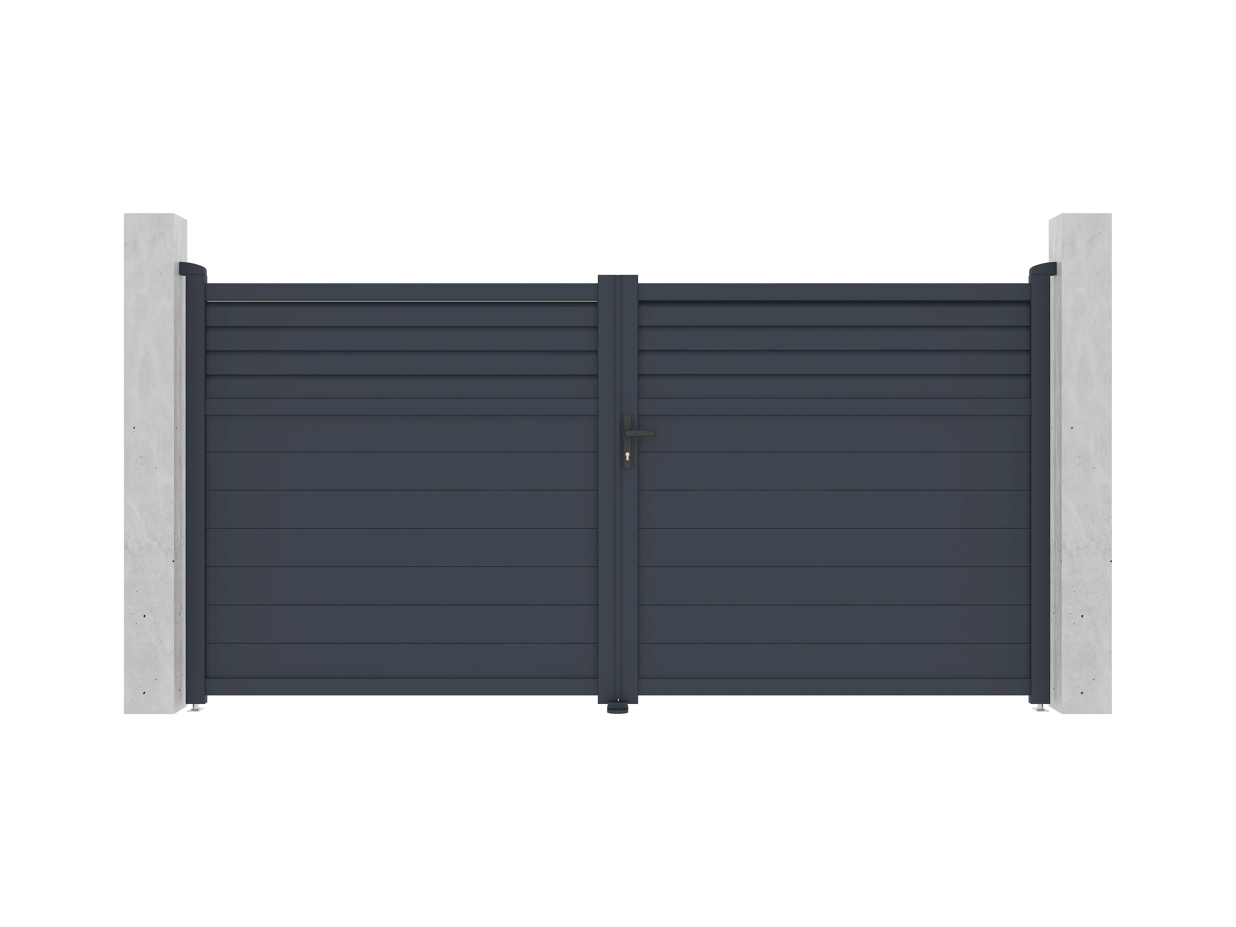 Brama rozwierna żaluzjowa z antracytowego aluminium szer. 355 x wys. 181 cm - VIAZO