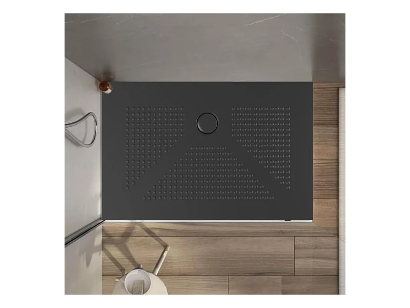 Brodzik prostokątny cienki "Milano" z czarnej żywicy z efektem kamienia, antypoślizgowy, 80x120h cm