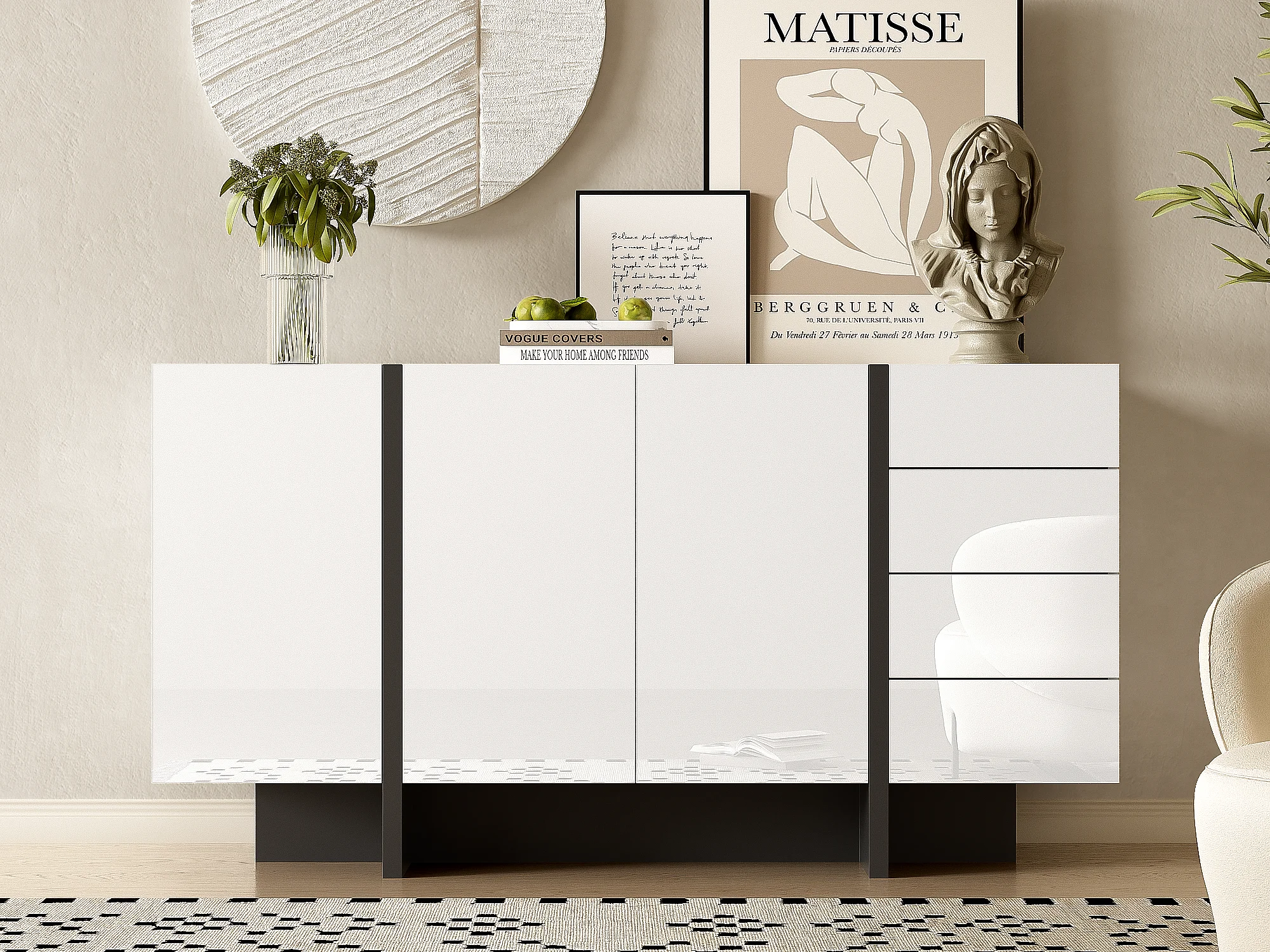Bufet 2-drzwiowy i 4-szufladowy - połysk - Biały i Czarny