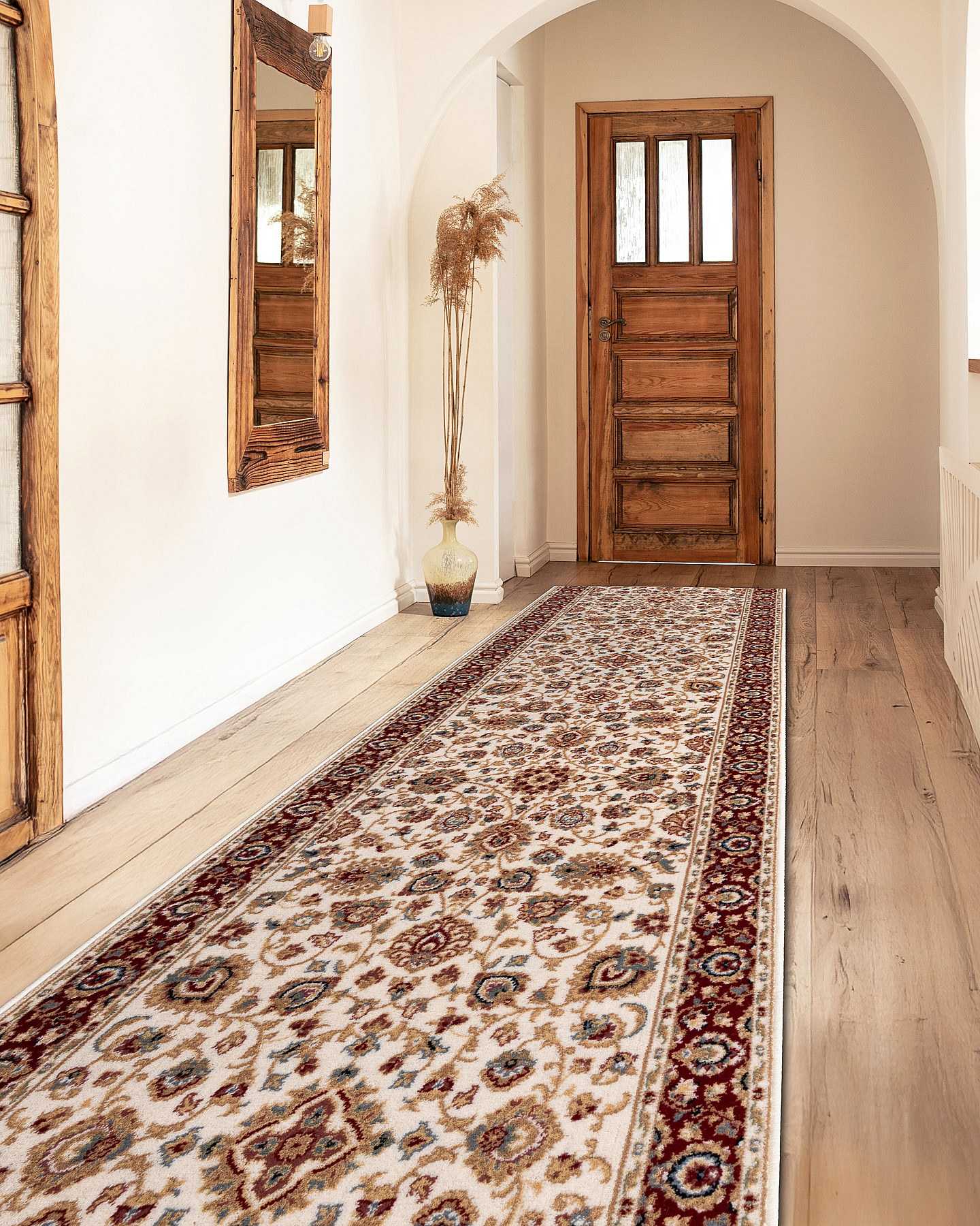 Chodnik NAIN wełniany Ornament, kwiaty 6999 51063 beż / bordo 80cm 80x1050 cm